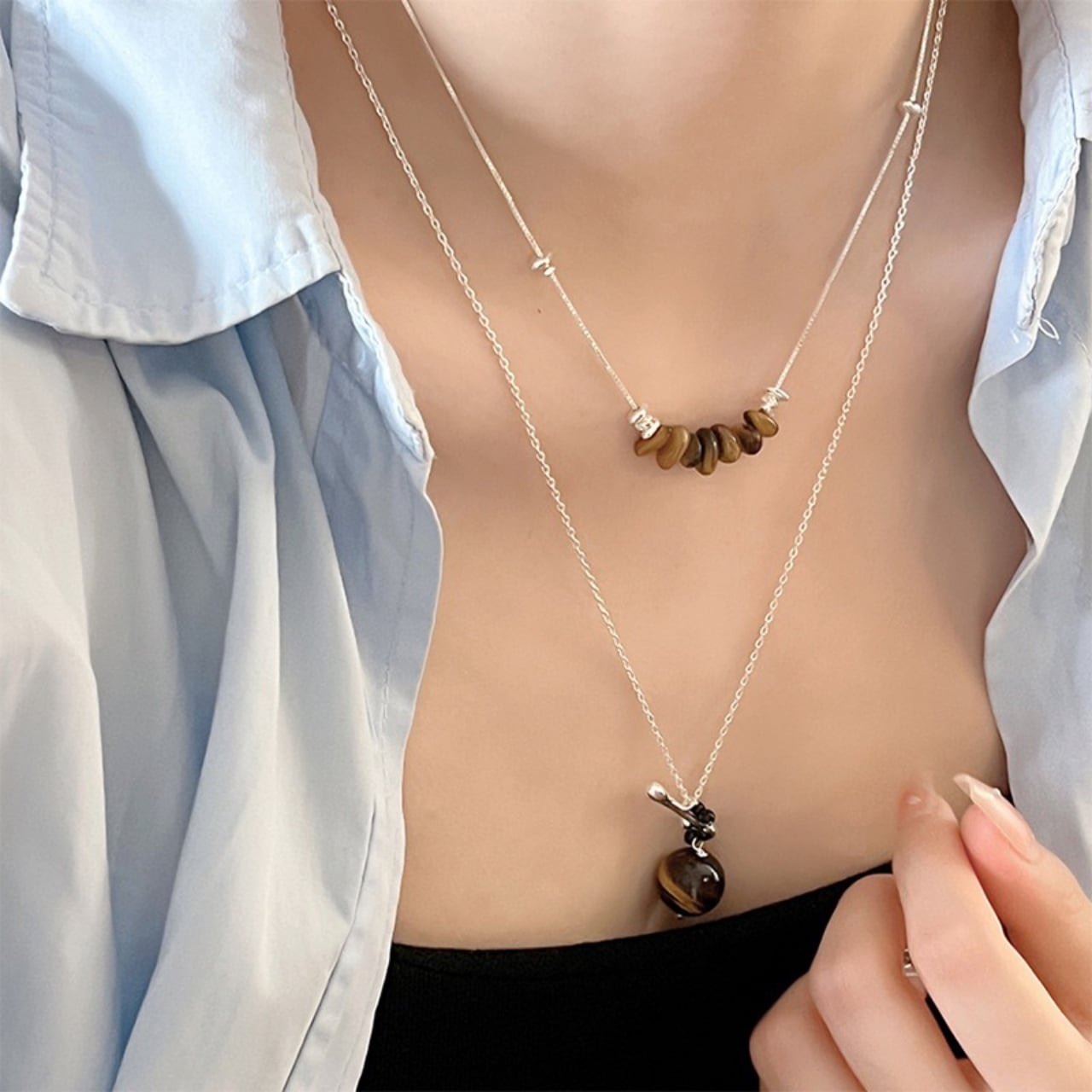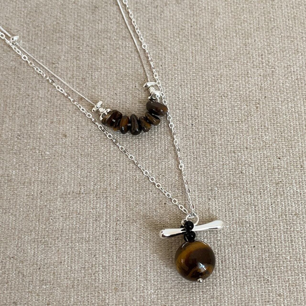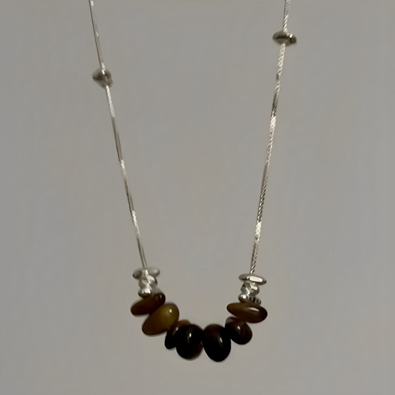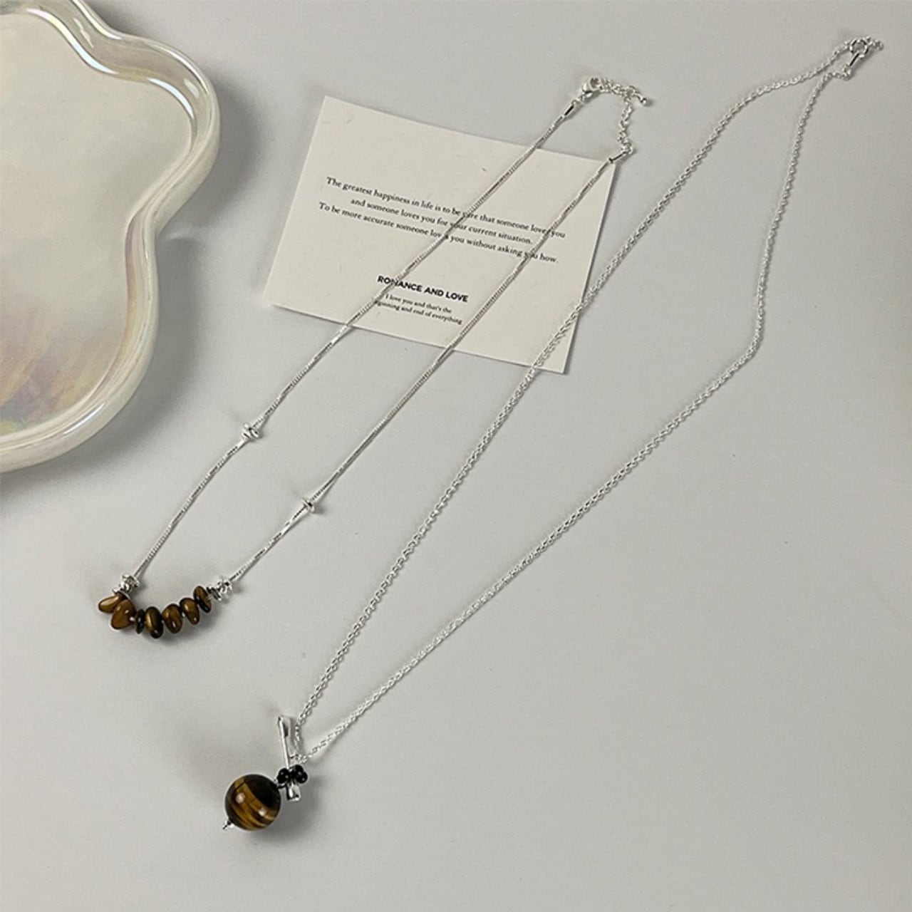 神秘的な輝きを放つタイガーアイ調のストーンをあしらったチェーンネックレスの2点セット。