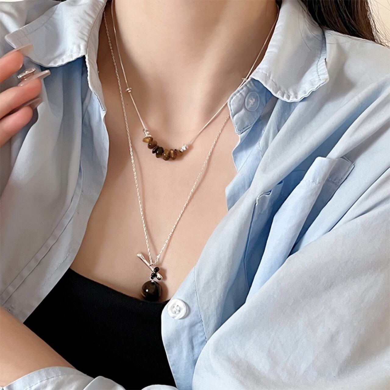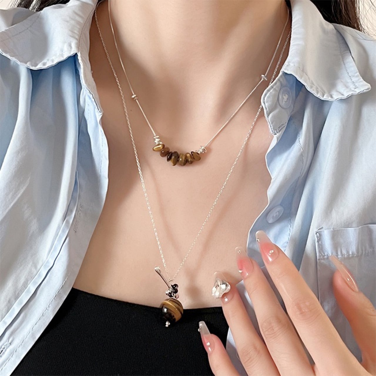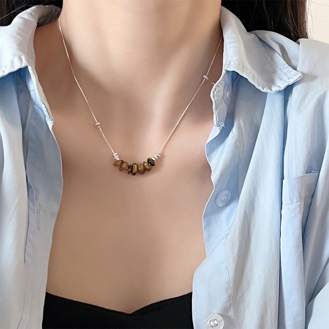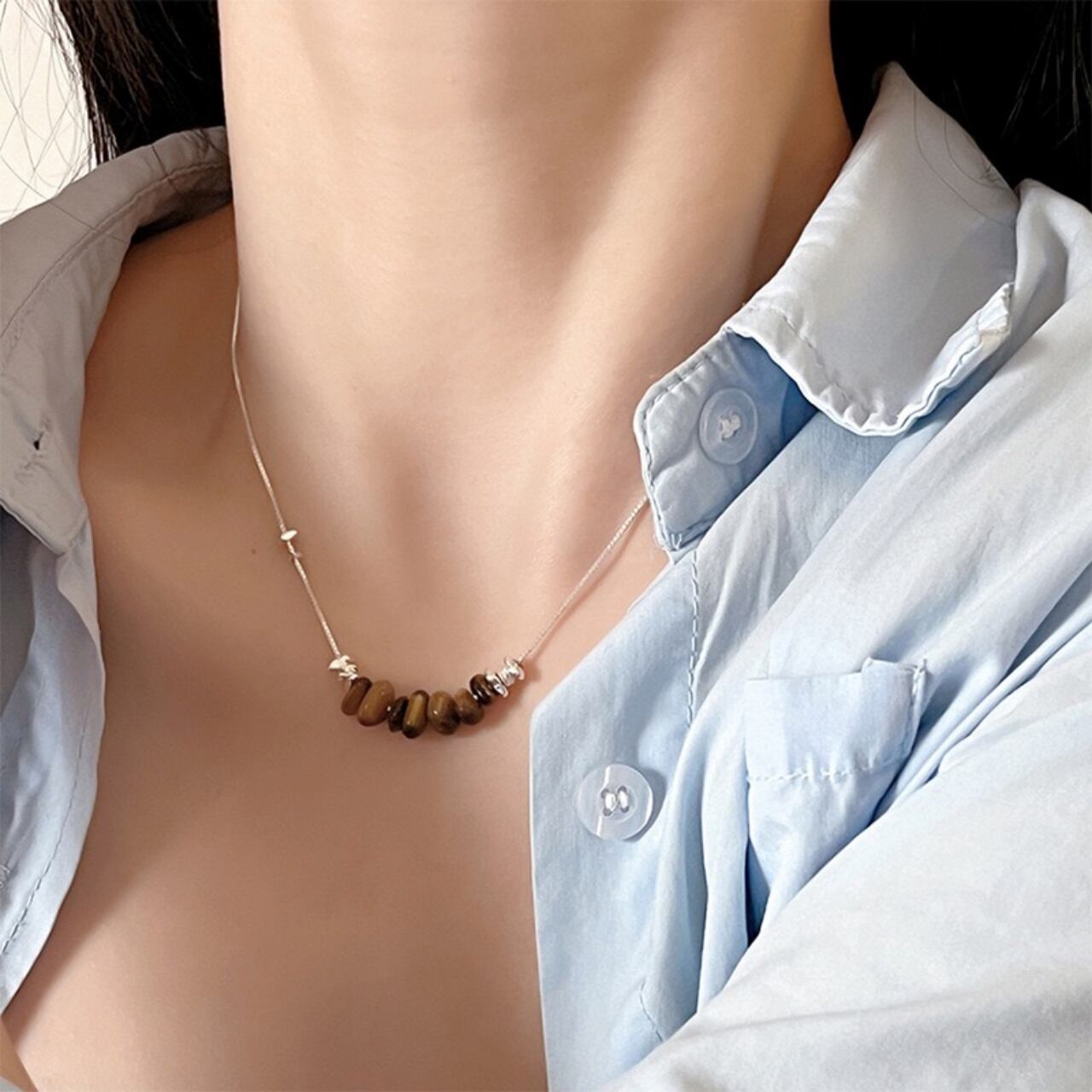神秘的な輝きを放つタイガーアイ調のストーンをあしらったチェーンネックレスの2点セット。
