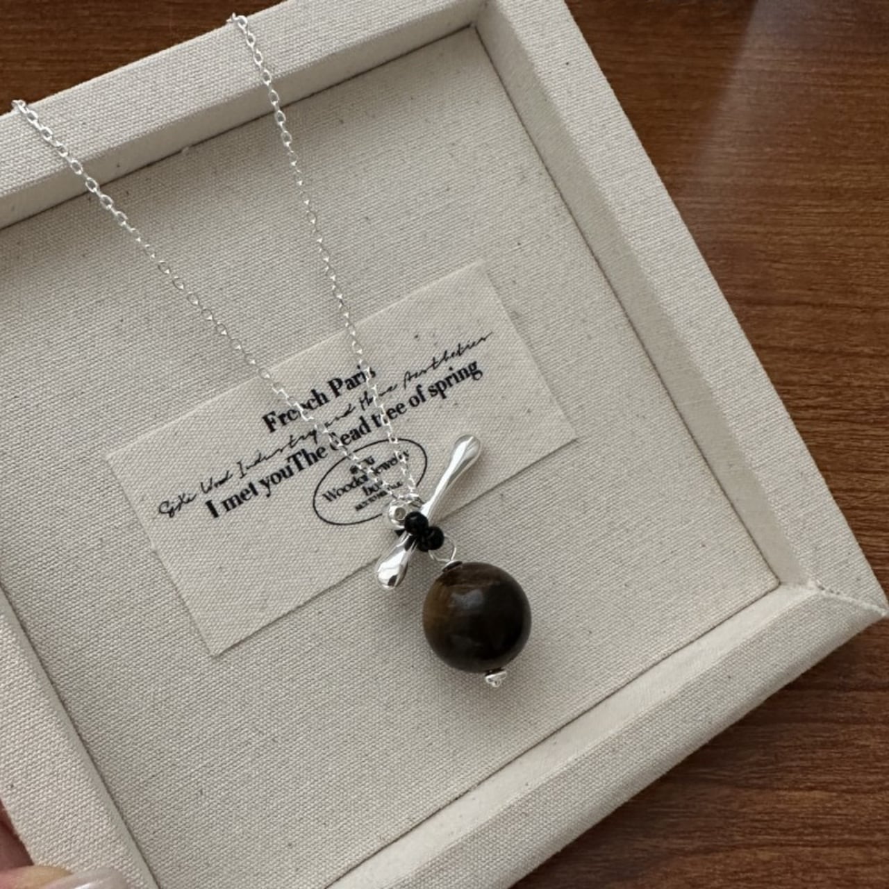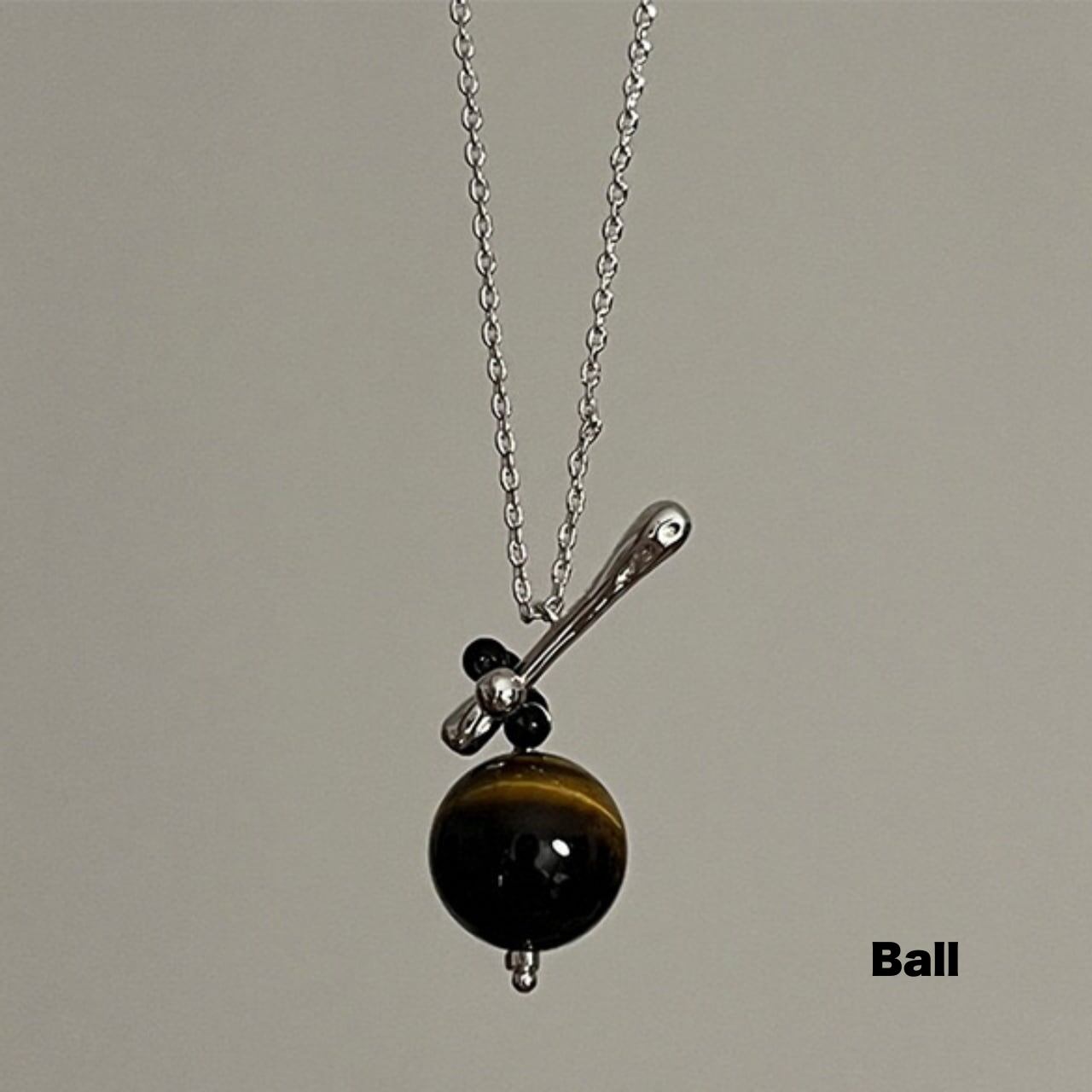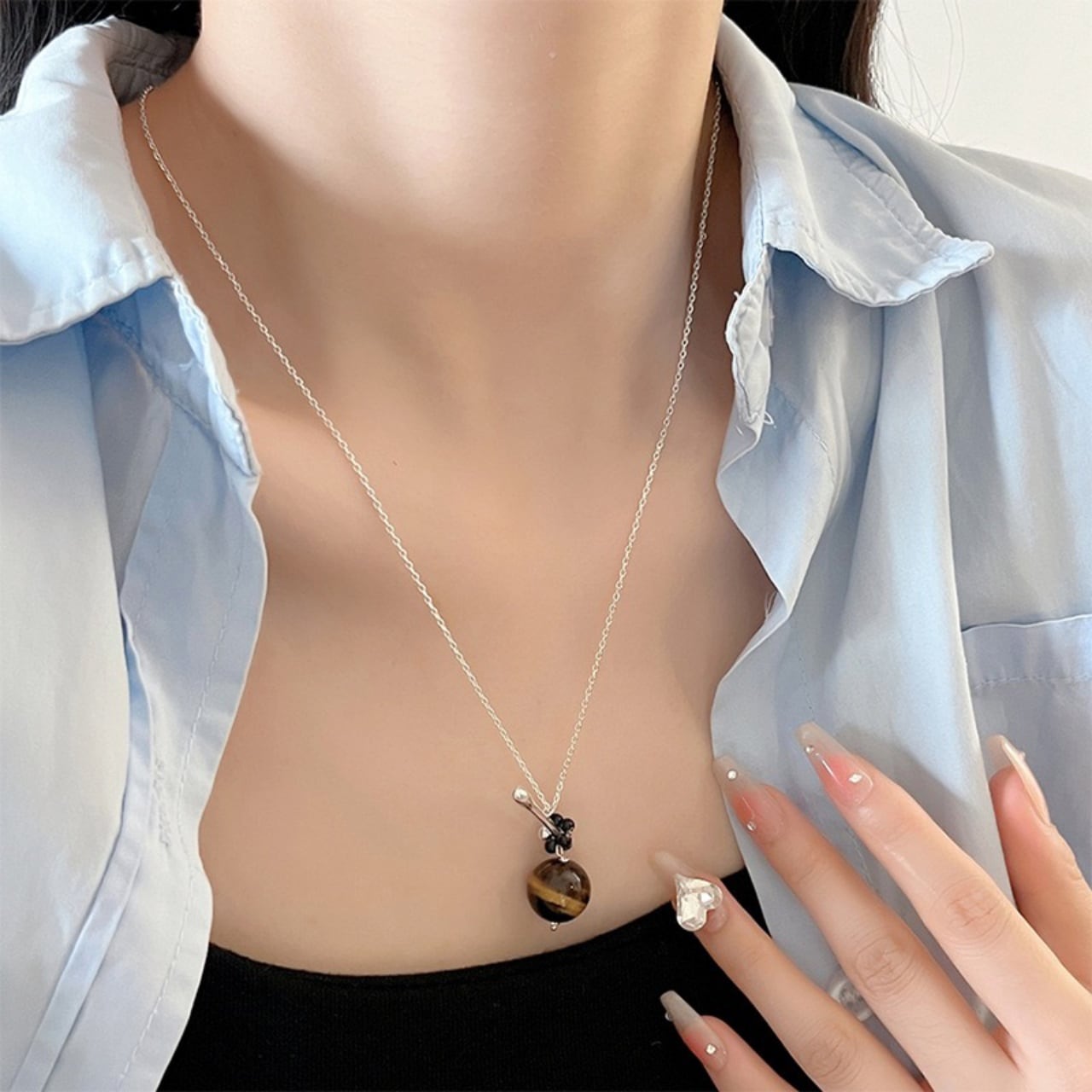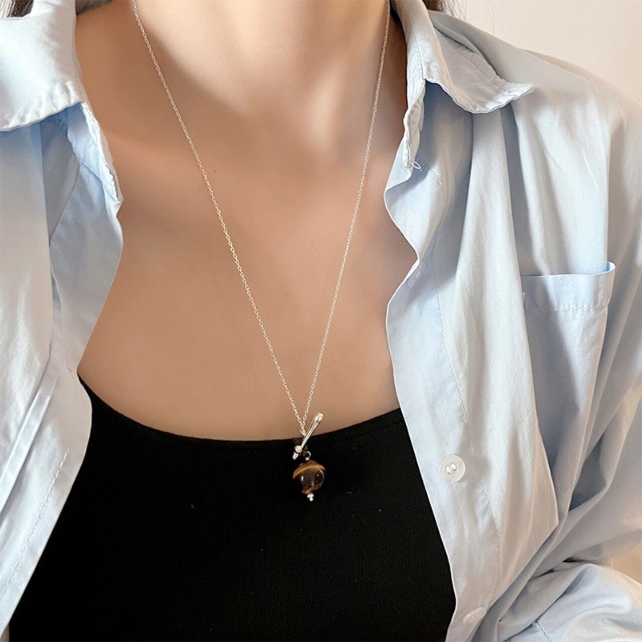 神秘的な輝きを放つタイガーアイ調のストーンをあしらったチェーンネックレスの2点セット。
