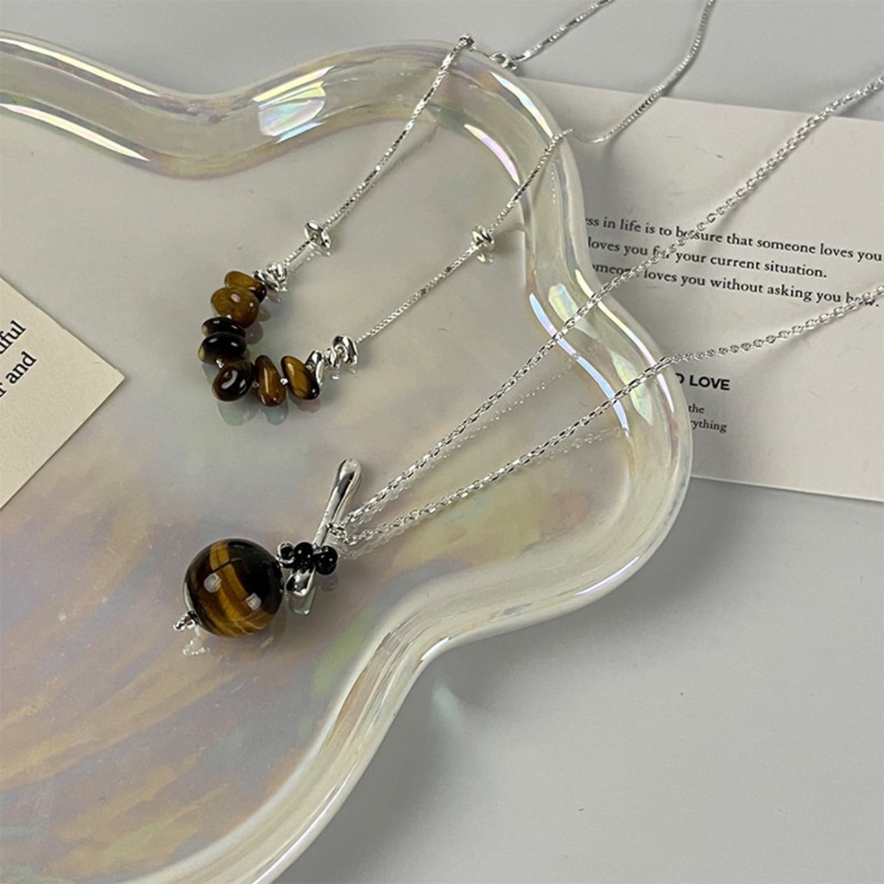 Tiger Eye Stone Silver Chain Necklace Set H0022