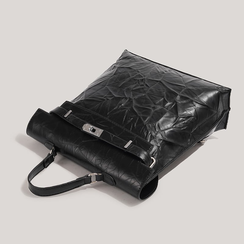 ミニマルなブラックカラーでありながら、エンボス加工が施された独特なテクスチャーが、スタイリングに深みと洗練されたモード感をプラスします。