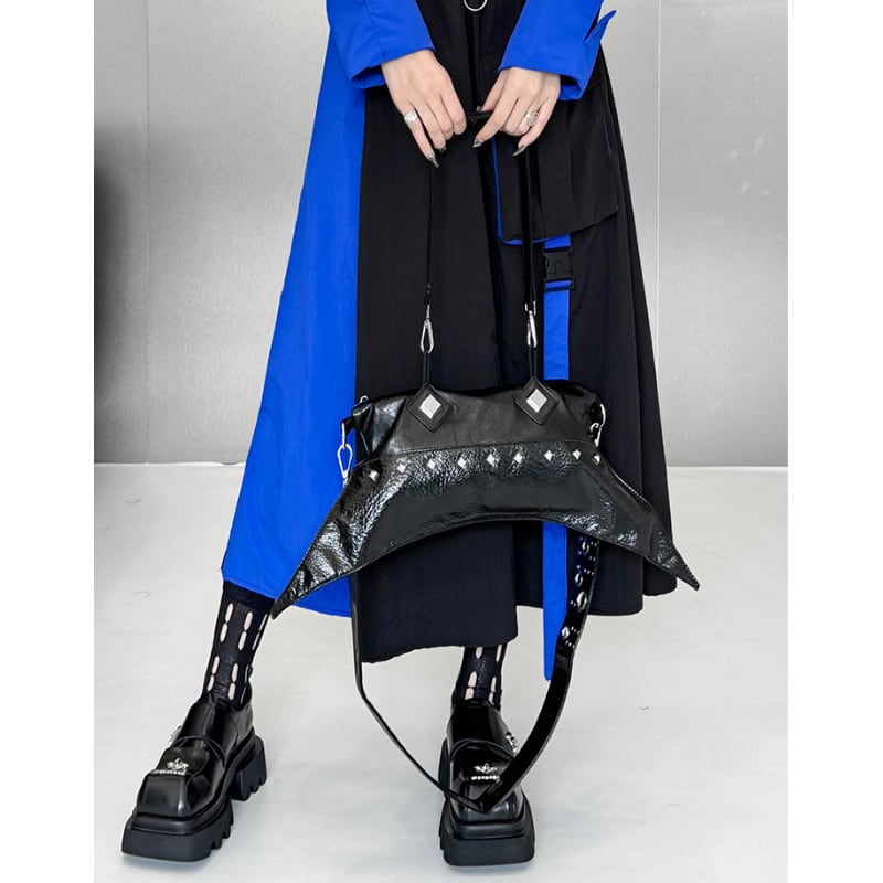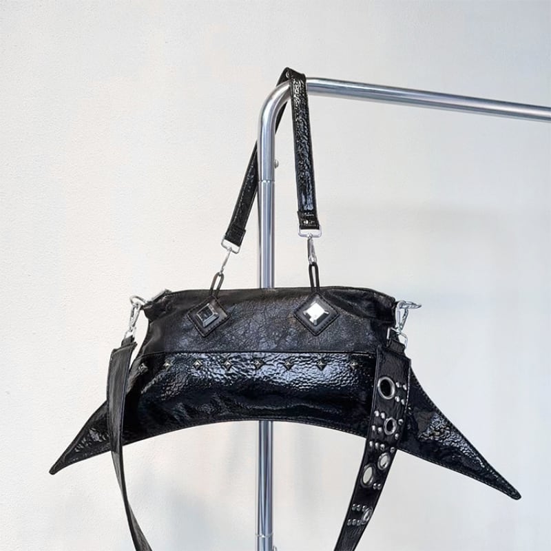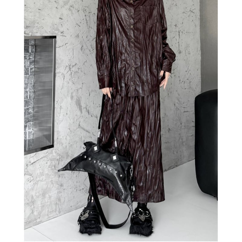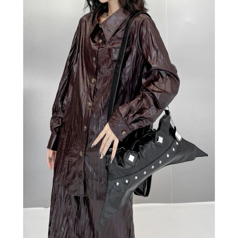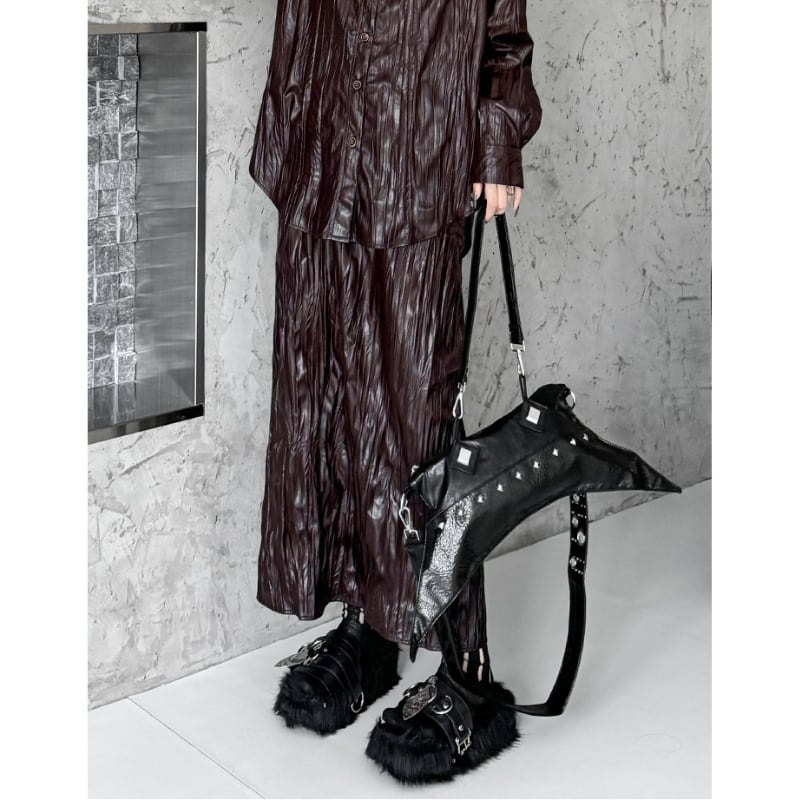 光沢のある素材とスタッズのディテールが、大人のクールな魅力を引き立て個性を一層輝かせます。