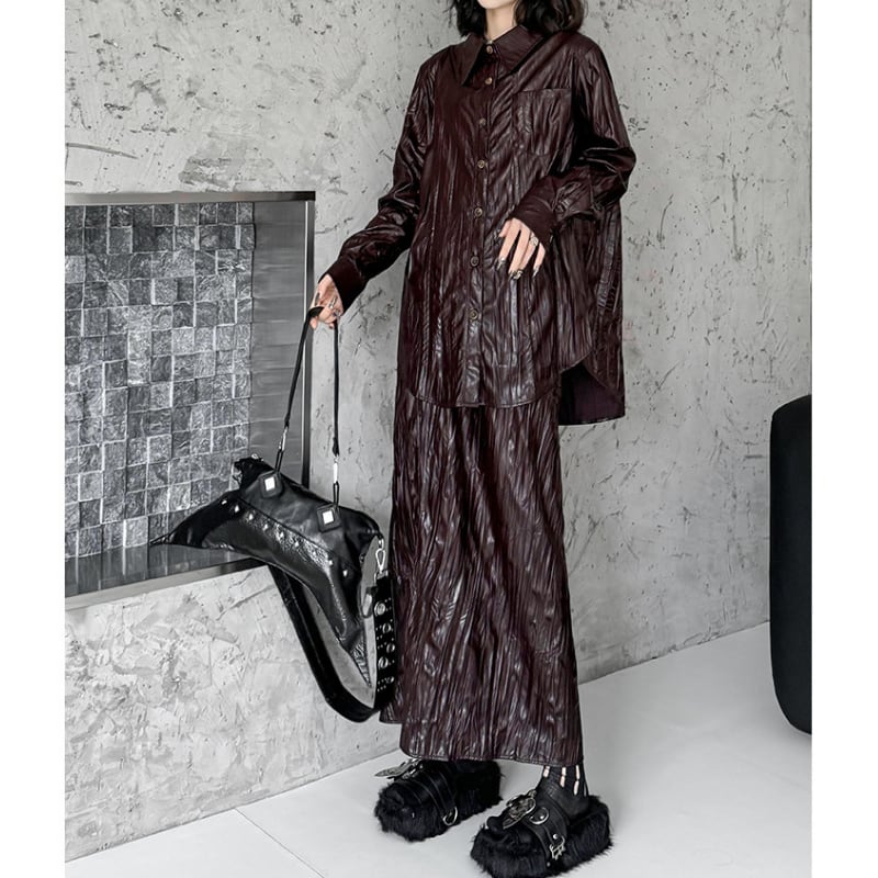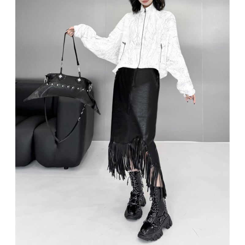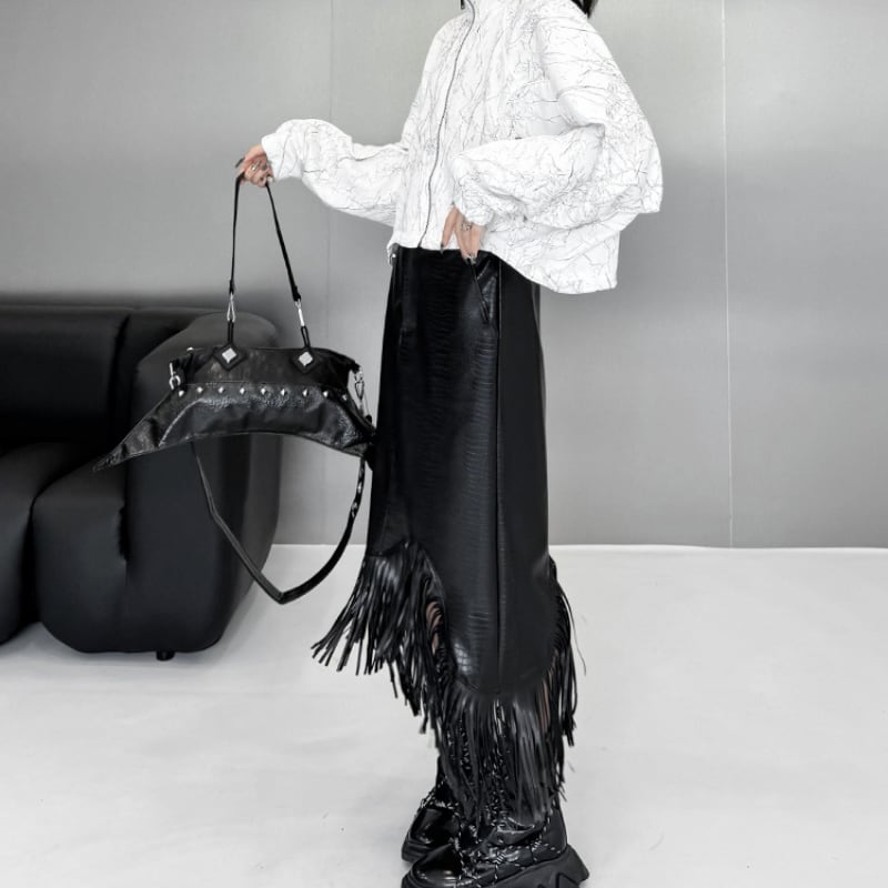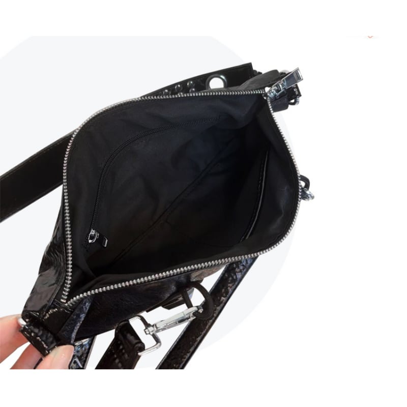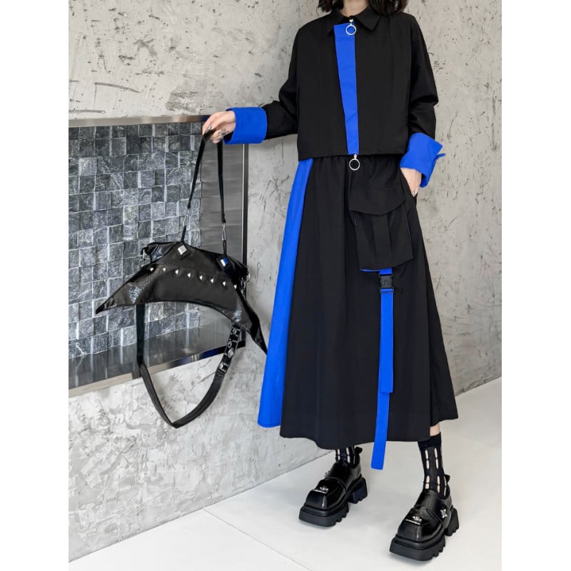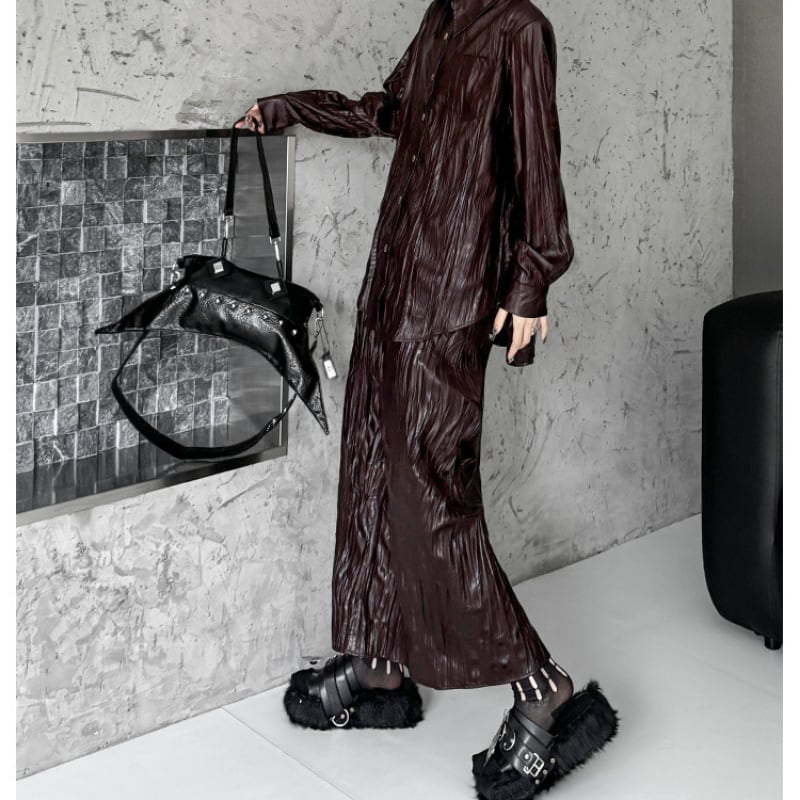 光沢のある素材とスタッズのディテールが、大人のクールな魅力を引き立て個性を一層輝かせます。