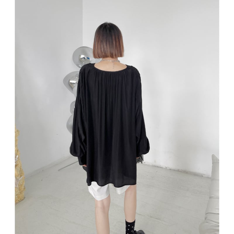 ゆったりとしたルーズなシルエットは、体型を拾わず、リラックス感のある着心地。