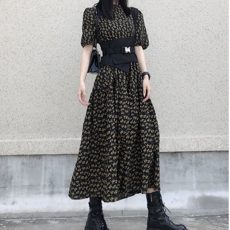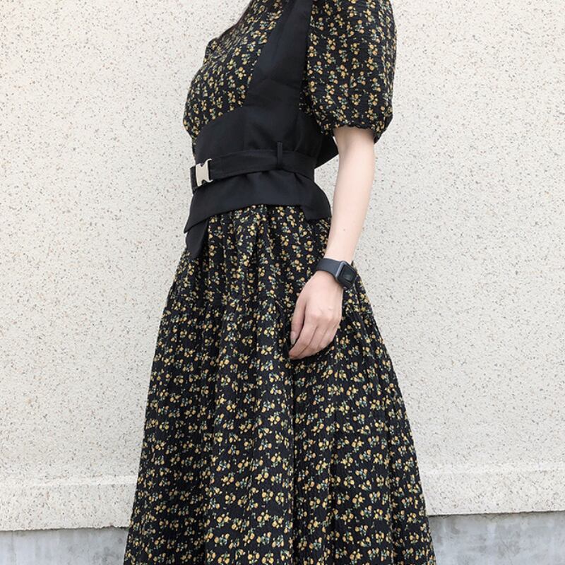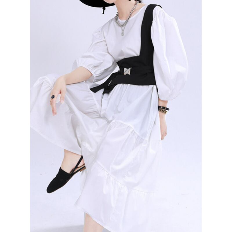 太めのウエストベルトは、コルセットのようにウエストをマークし、美しいシルエットを実現。