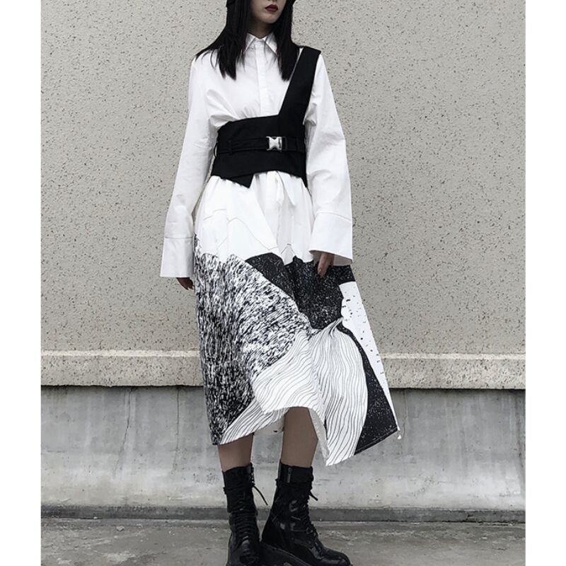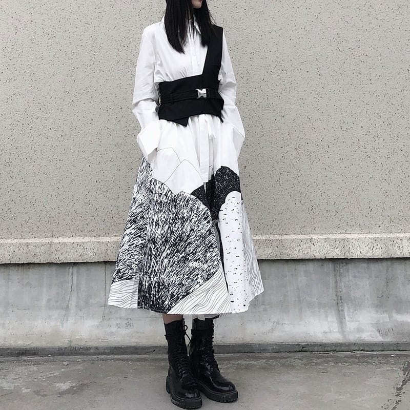 シンプルなワンピースやシャツに重ねるだけで、ぐっとモードな雰囲気に早変わりします。