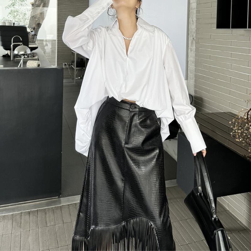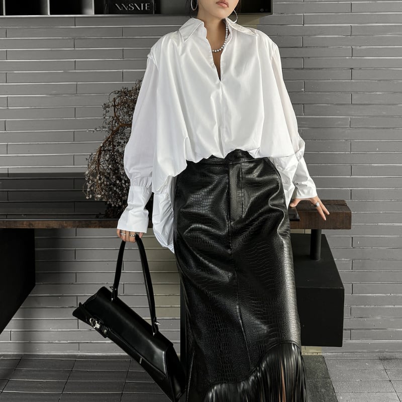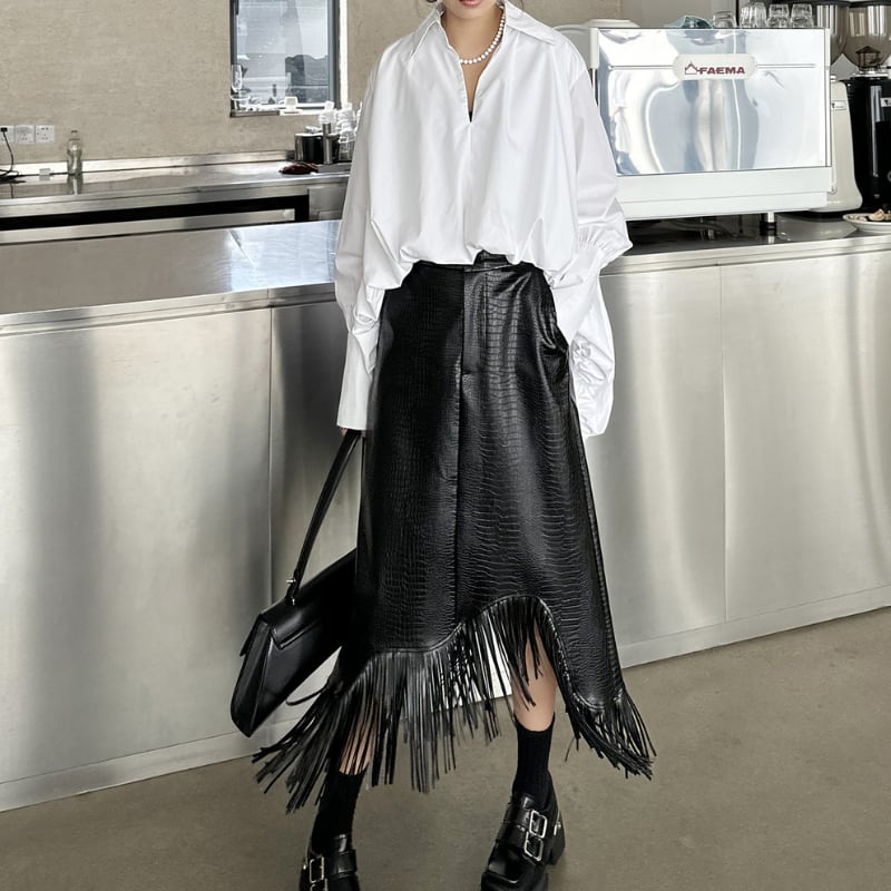 Asymmetrical Eco-Leather Fringe Skirt H0194