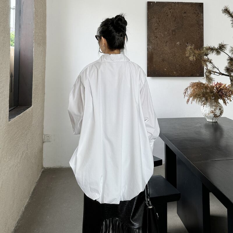 丸みを帯びた特徴的なヘムラインが、シンプルな着こなしに遊び心とモードな表情をプラスします。