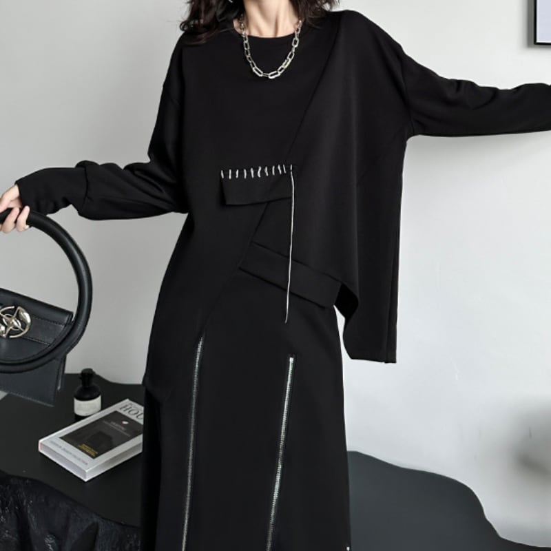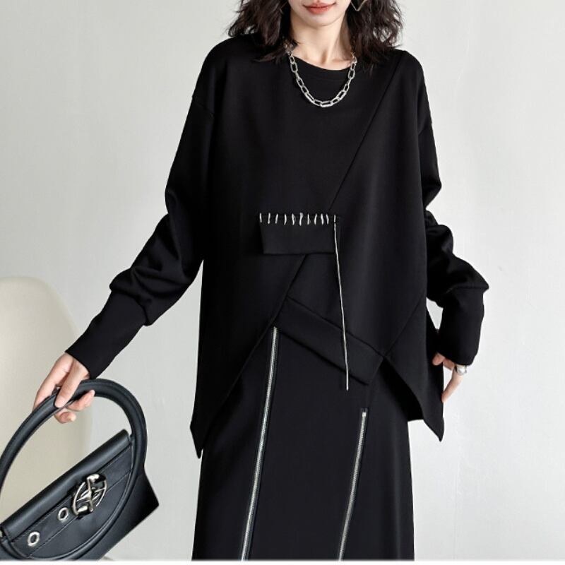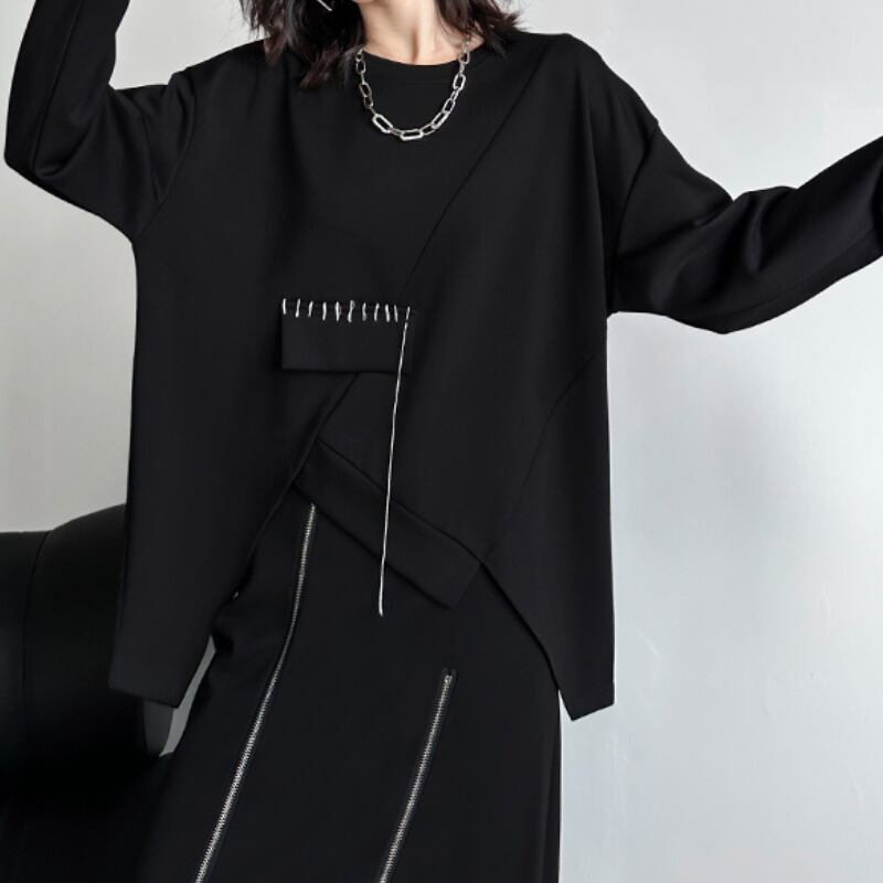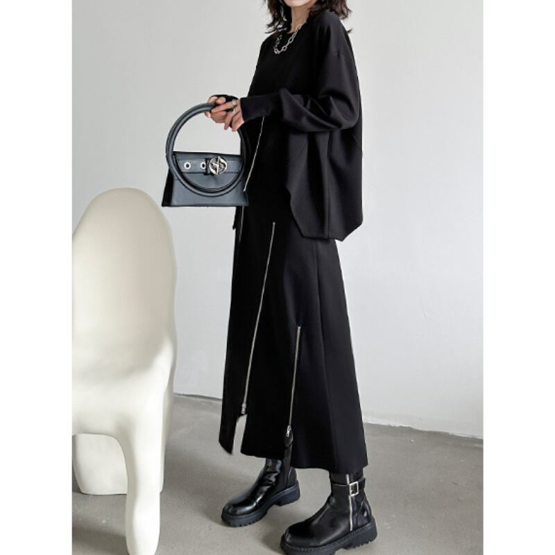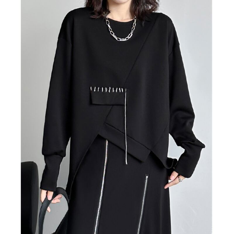 アシンメトリーな切り替えデザインが、着こなしにエッジを効かせ、フロントにあしらわれた、ハンドステッチが、シンプルなスタイルにアクセントをプラス。