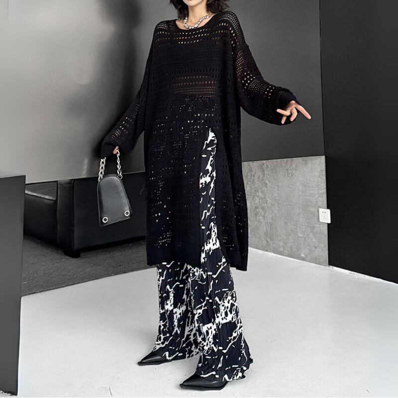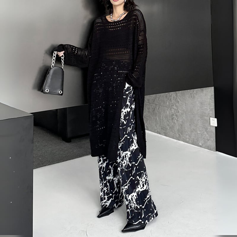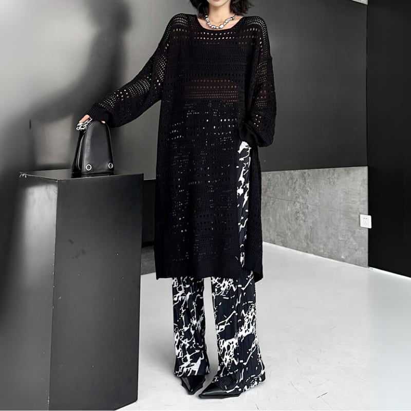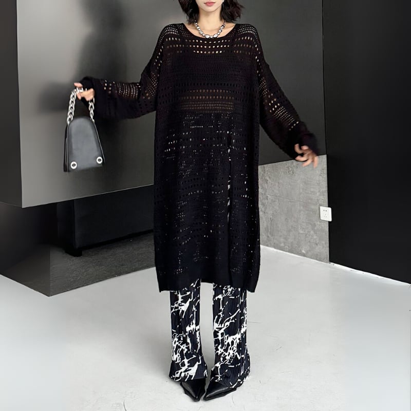 ざっくりと編まれた透け感のあるニット素材が、軽やかさとニュアンスをプラス。