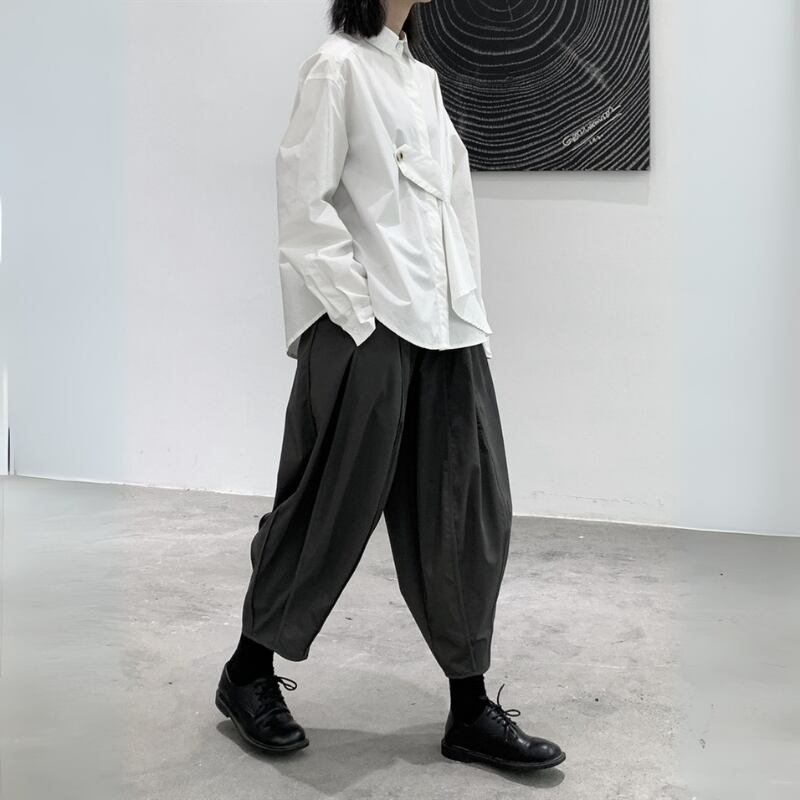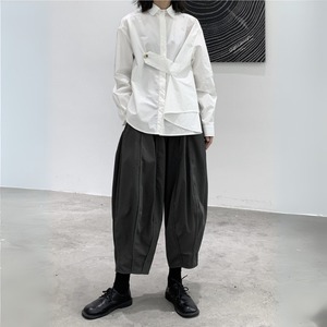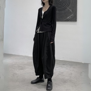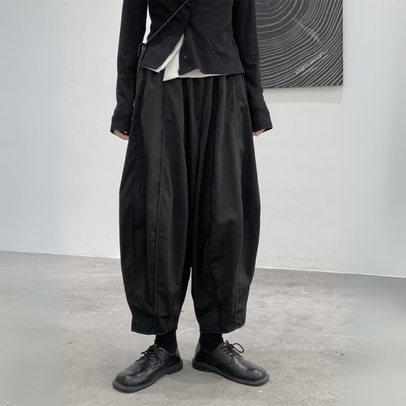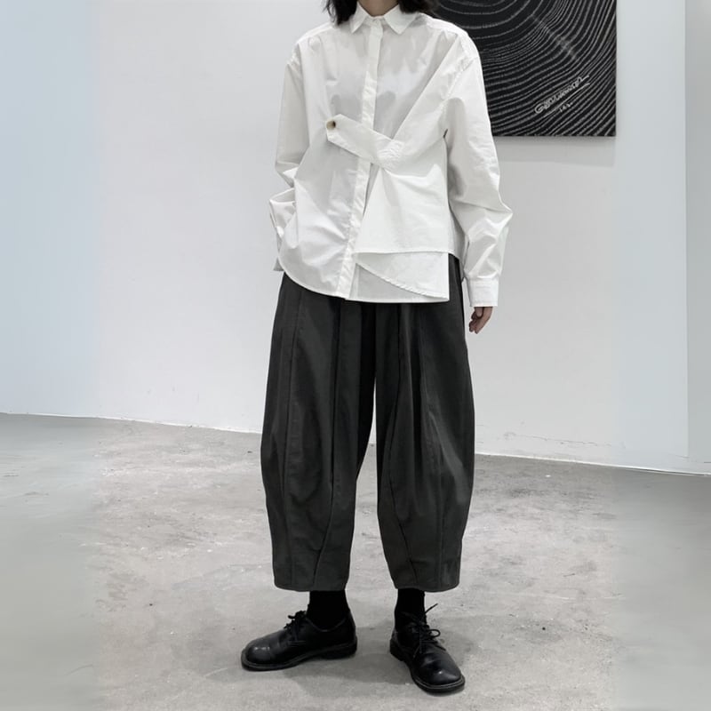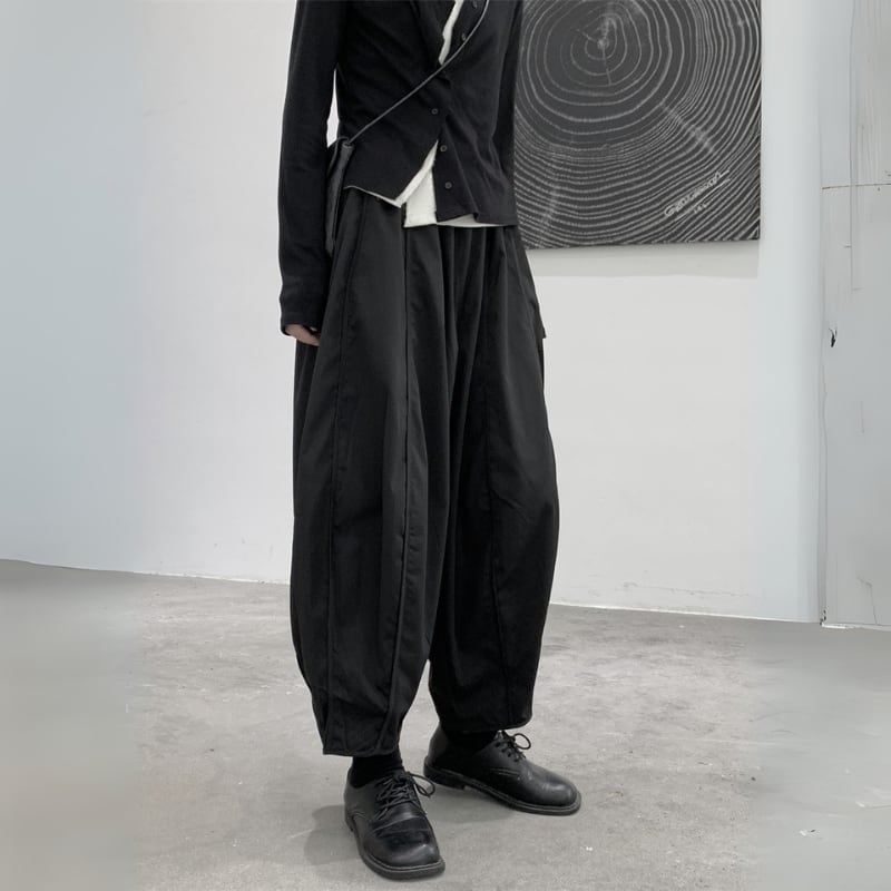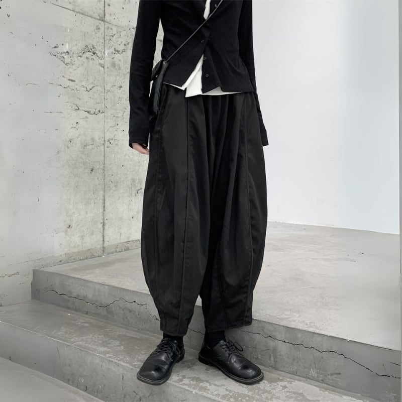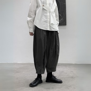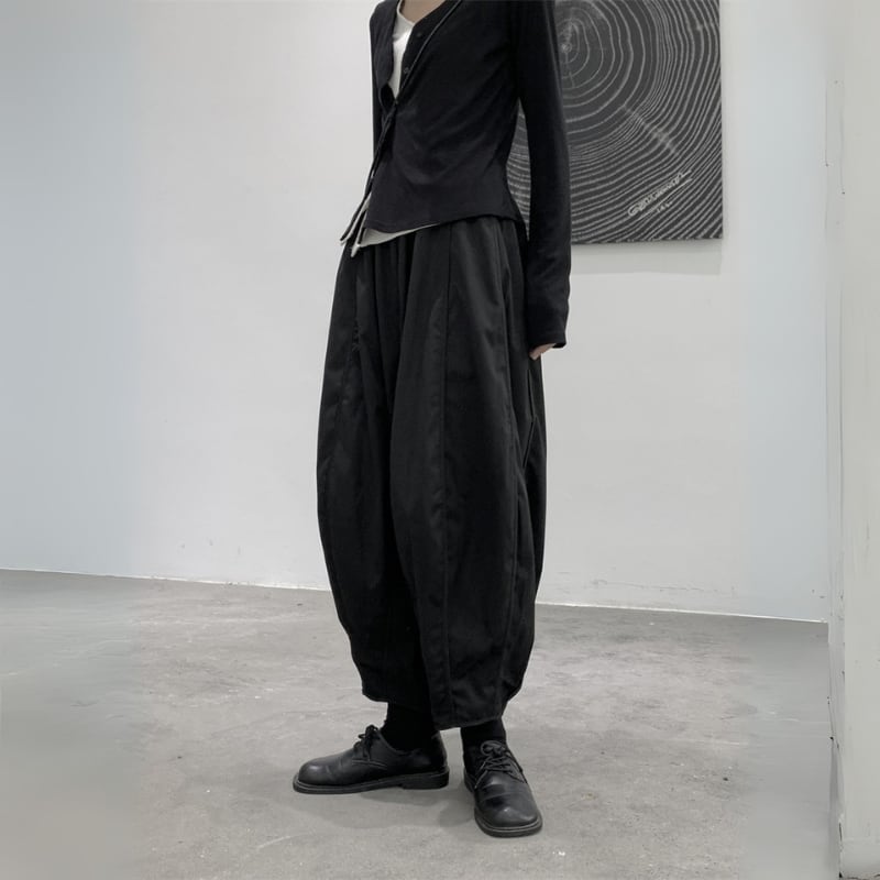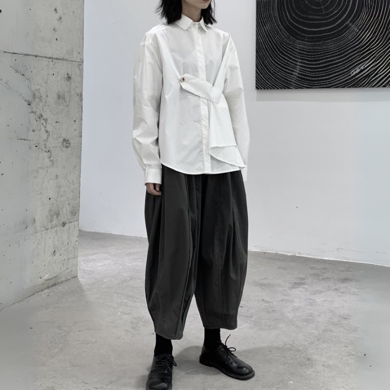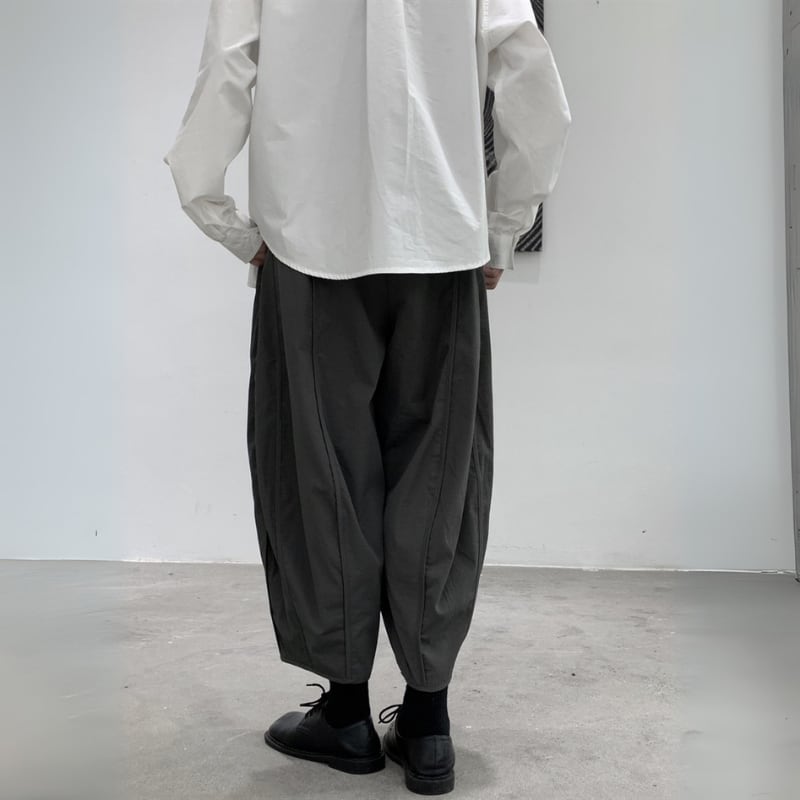 ゆったりとした股上と、コクーンシルエットが特徴的。