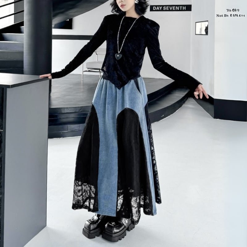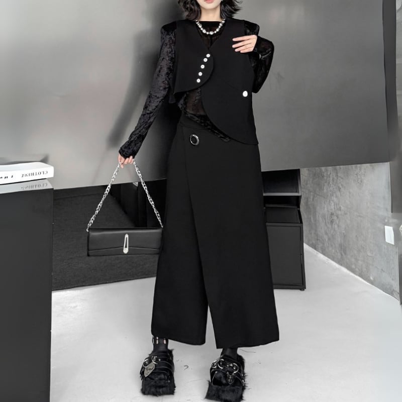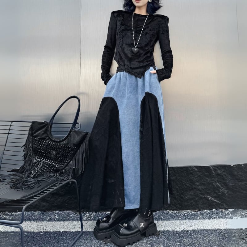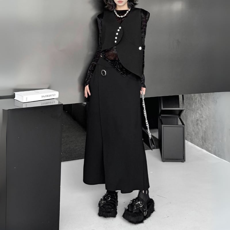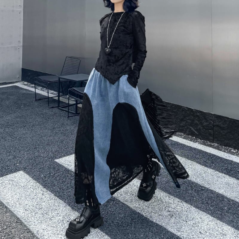 アシンメトリーなV字型のヘムラインが、動きのある個性的なシルエットを演出します。