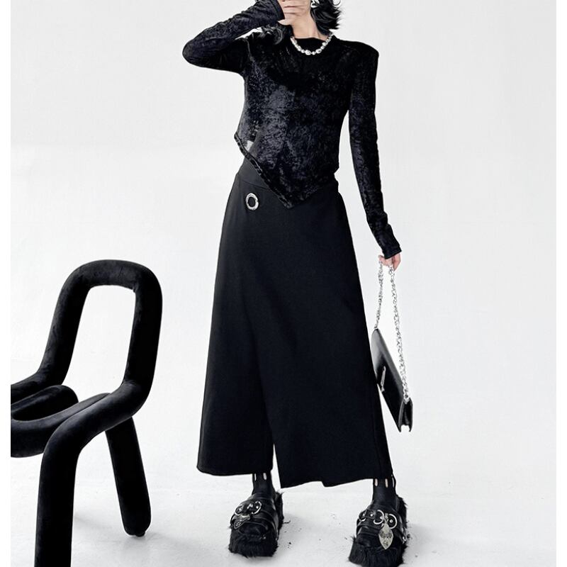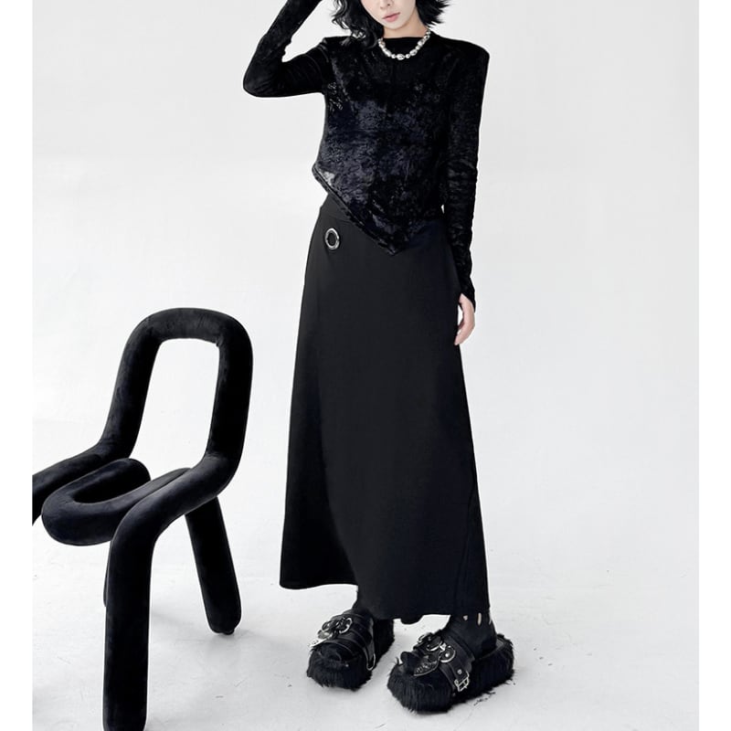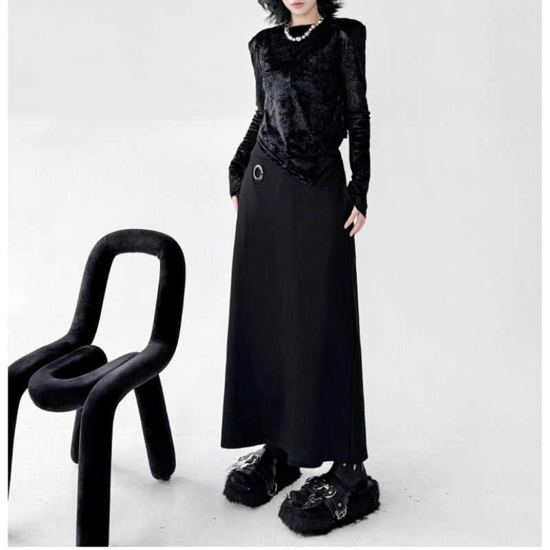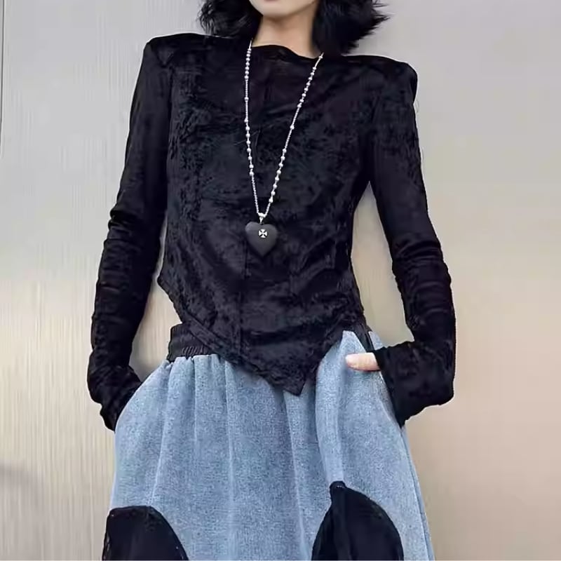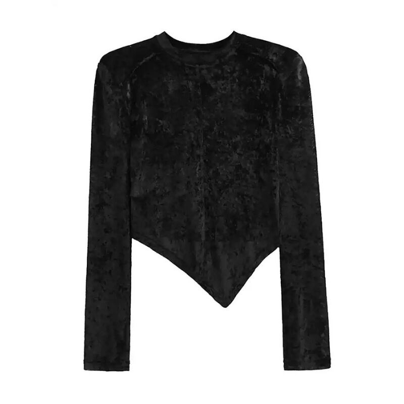 Velour-Like Asymmetrical Long Sleeve Top H0180