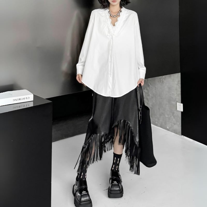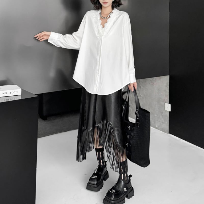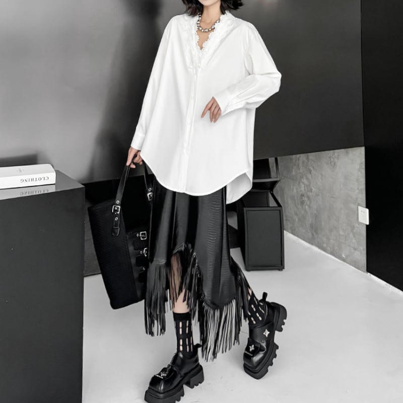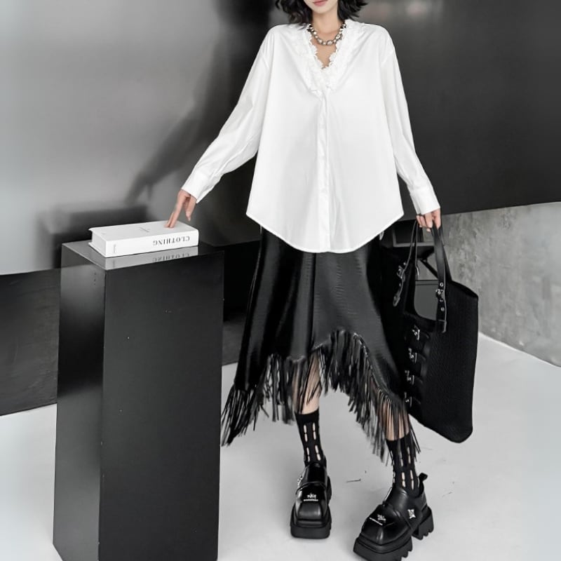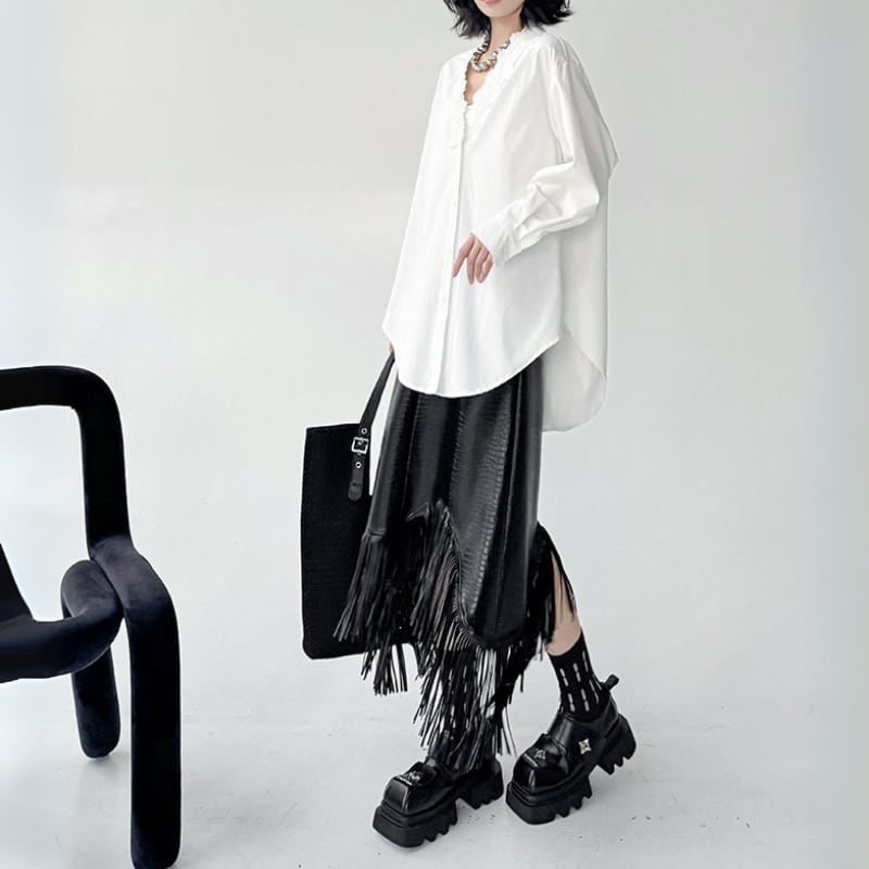 Asymmetrical Eco-Leather Fringe Skirt H0194