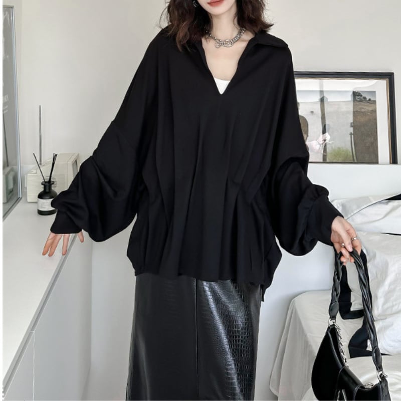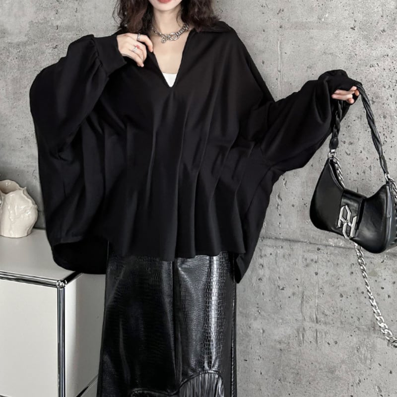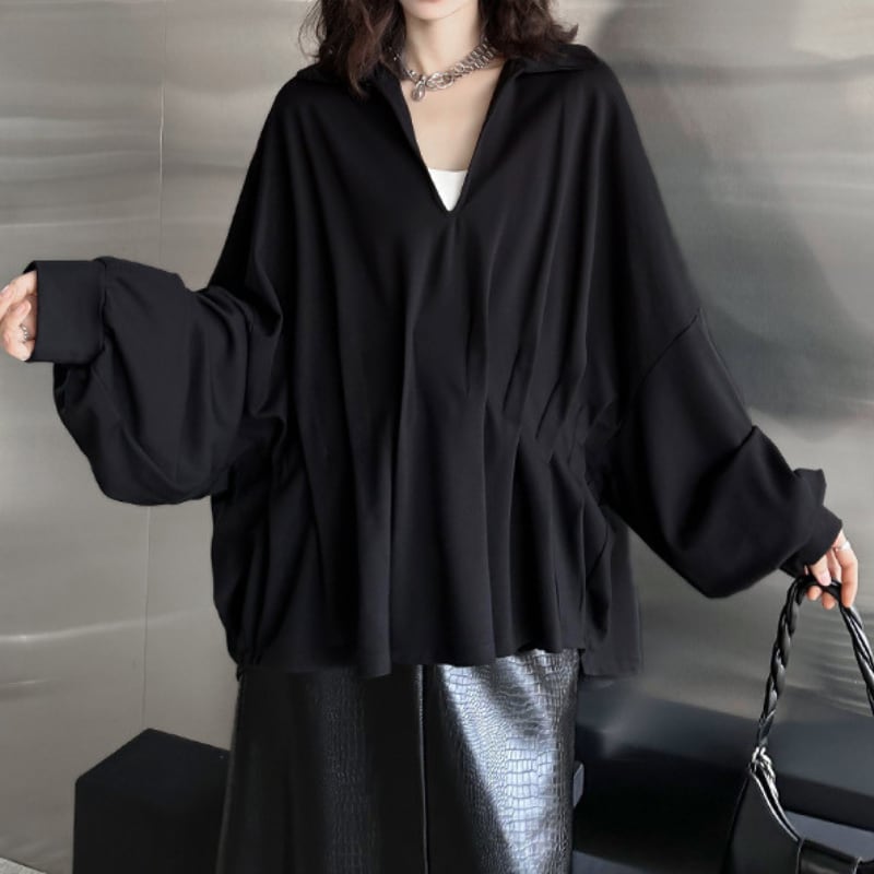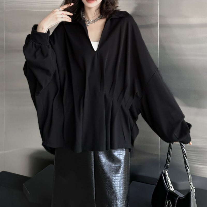 V-neck Gathered Dolman Pullover H0188