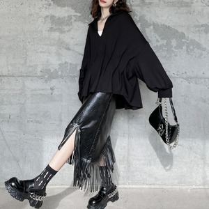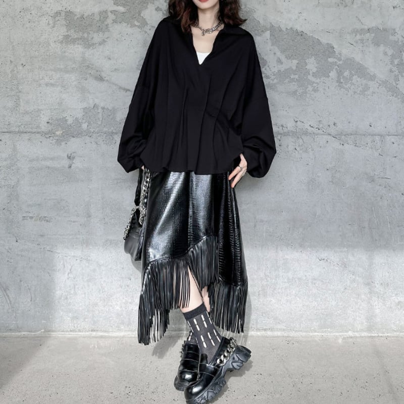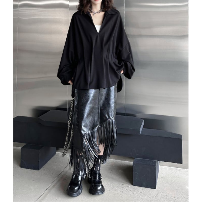 Asymmetrical Eco-Leather Fringe Skirt H0194
