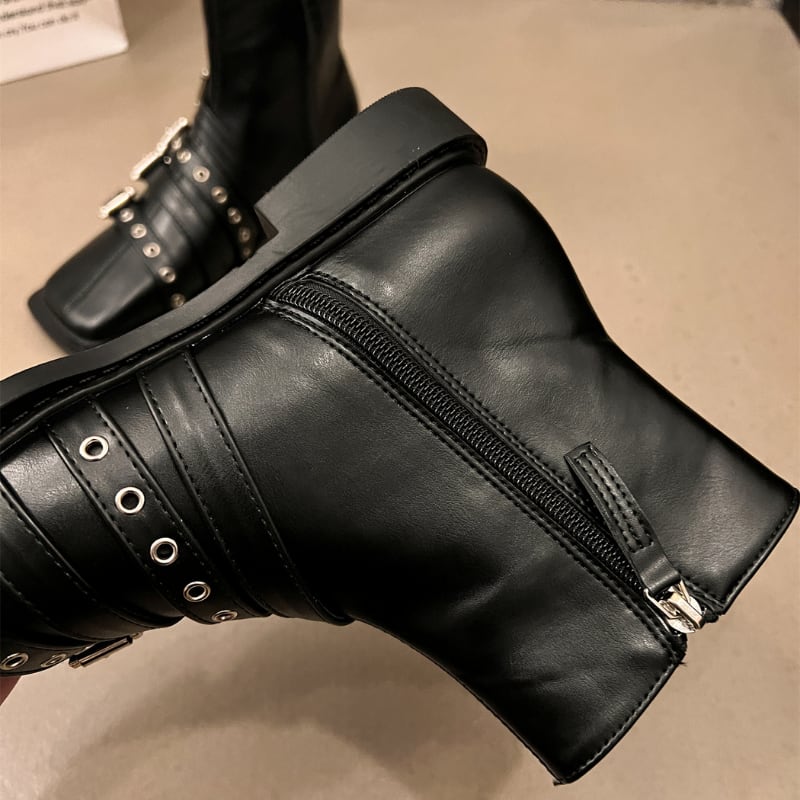 Multi-Belt Square Toe Boots H0186