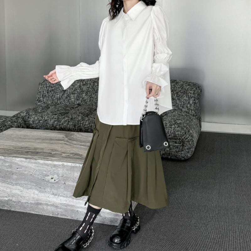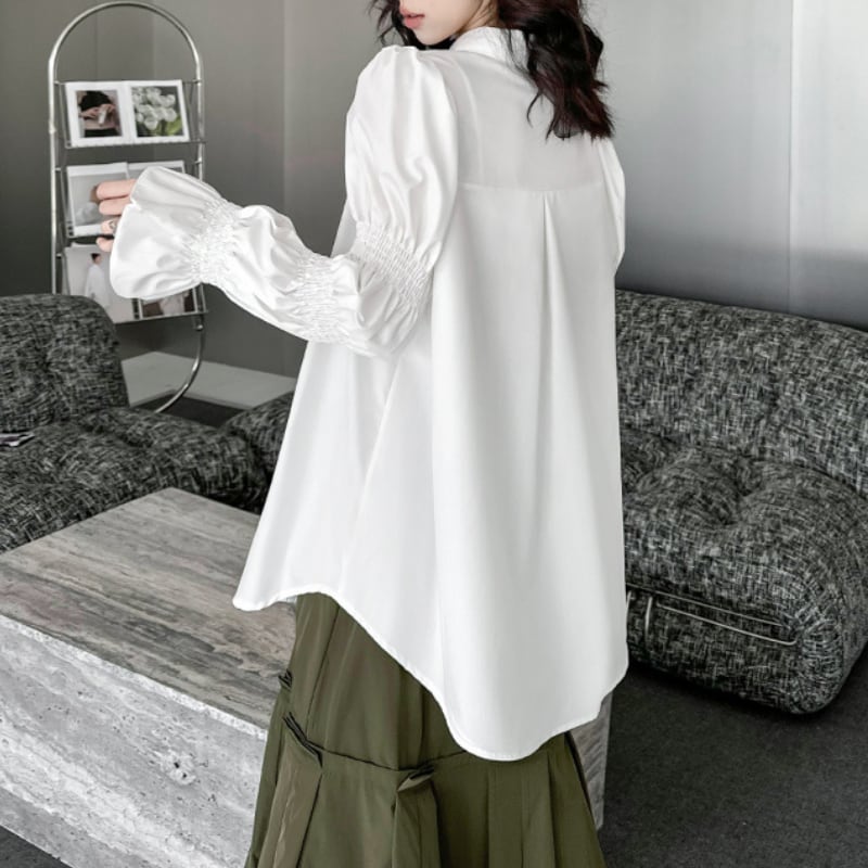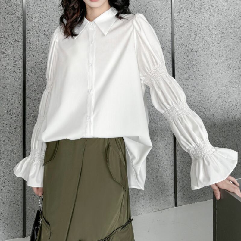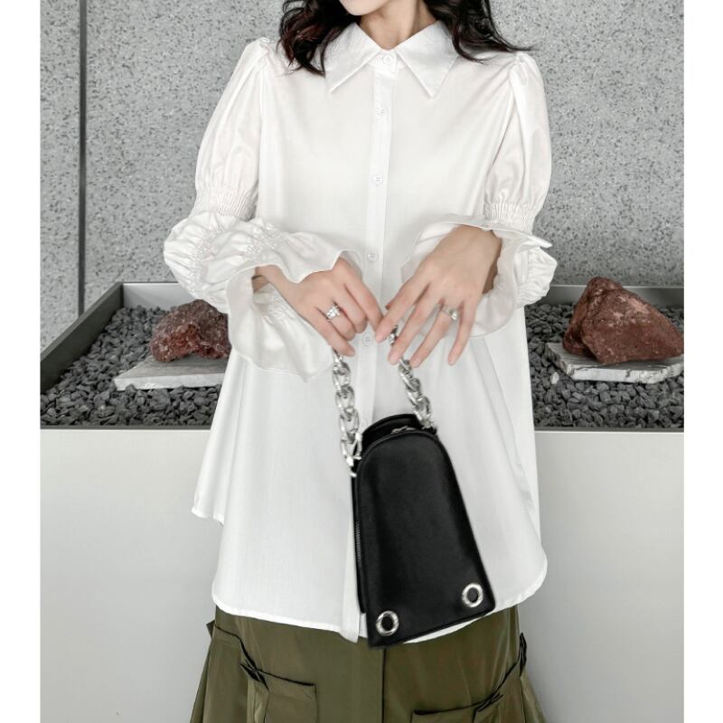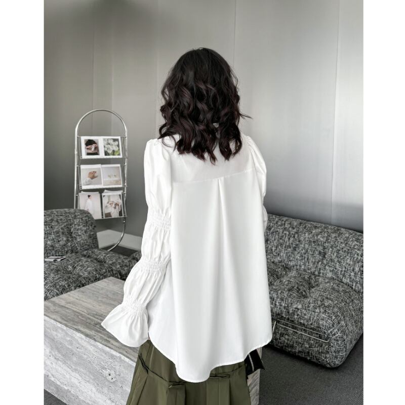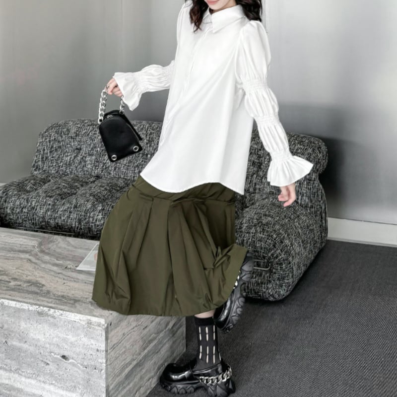 肩から手首にかけての独特なシルエットデザインが、腕を華奢に見せ、女性らしさを演出します。