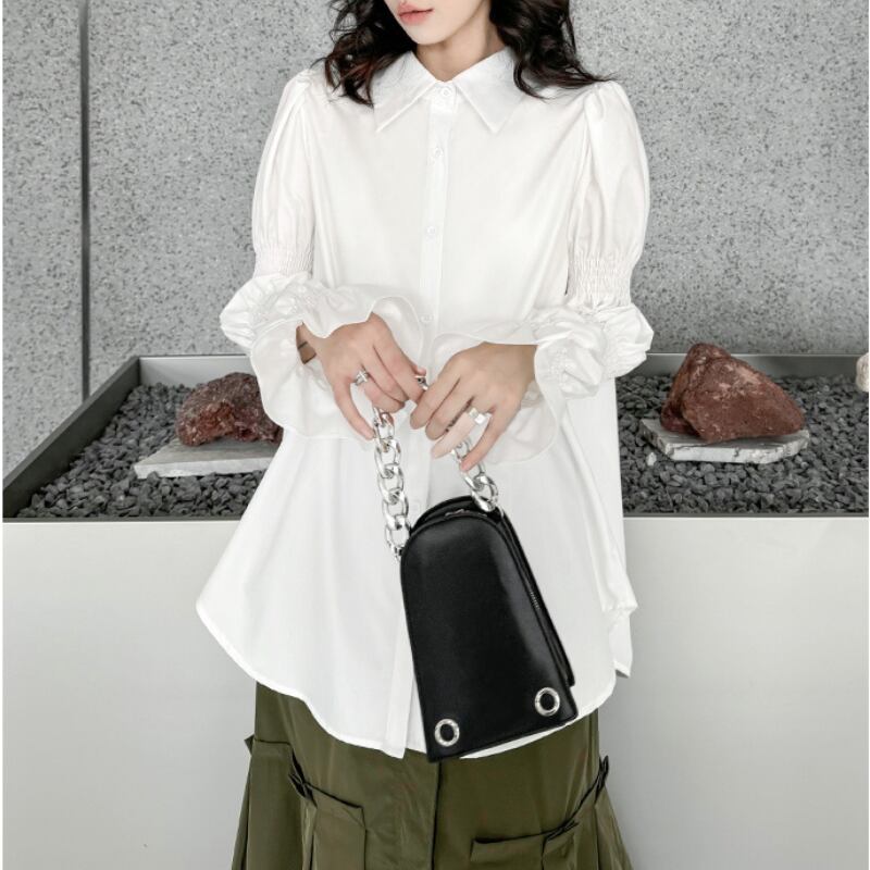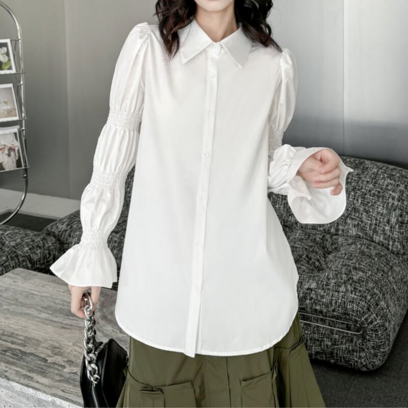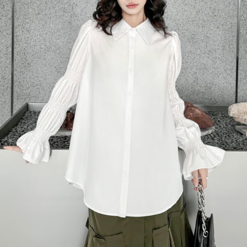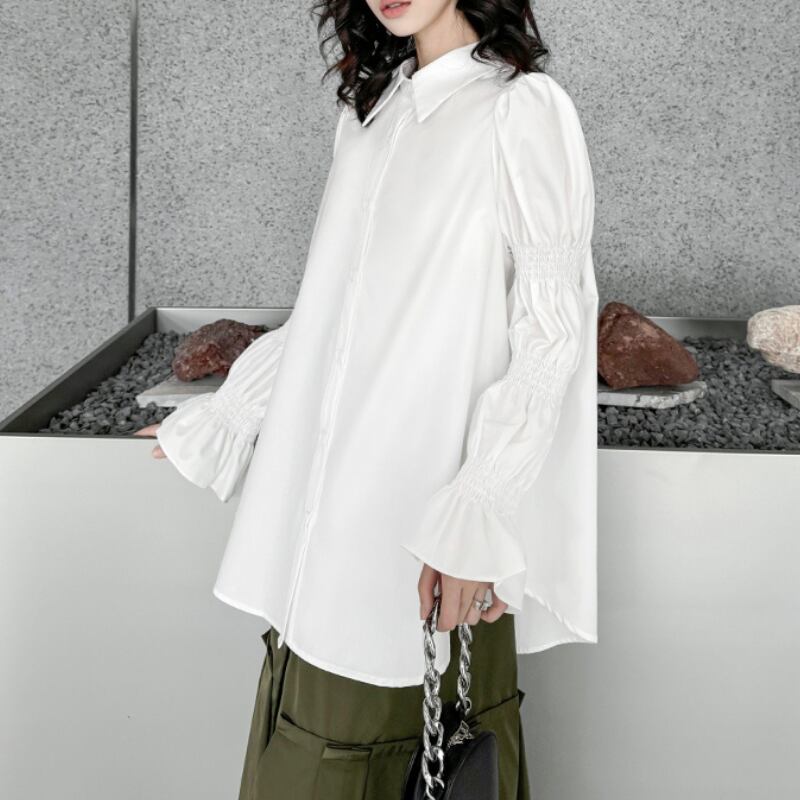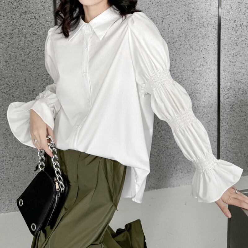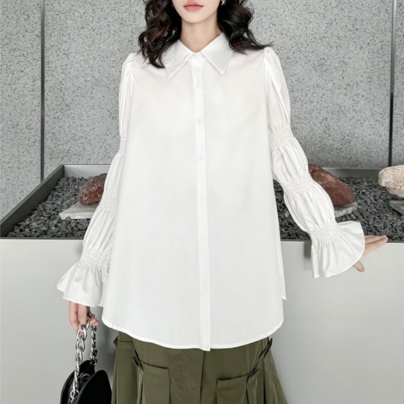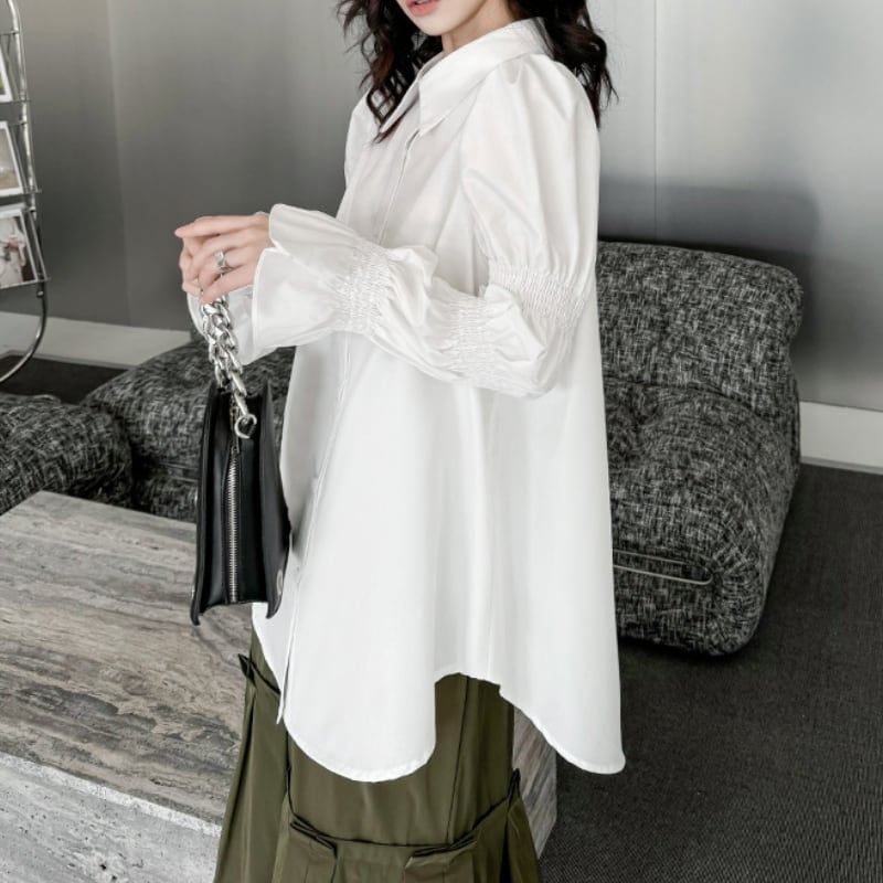 肩から手首にかけての独特なシルエットデザインが、腕を華奢に見せ、女性らしさを演出します。