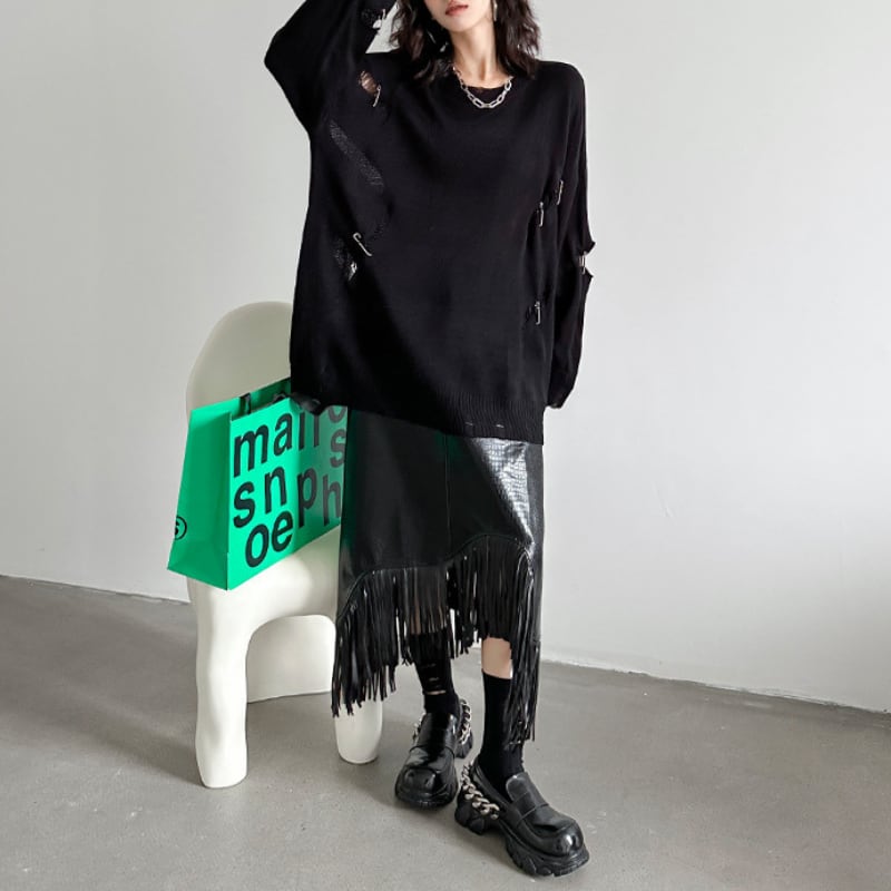 #02 Distressed Design Loose-Knit H0197