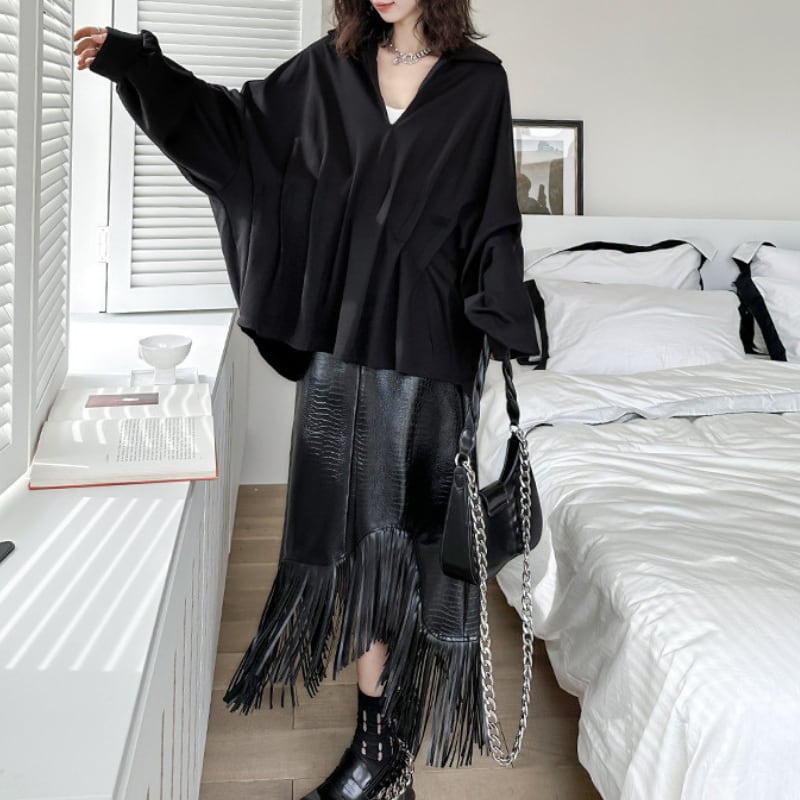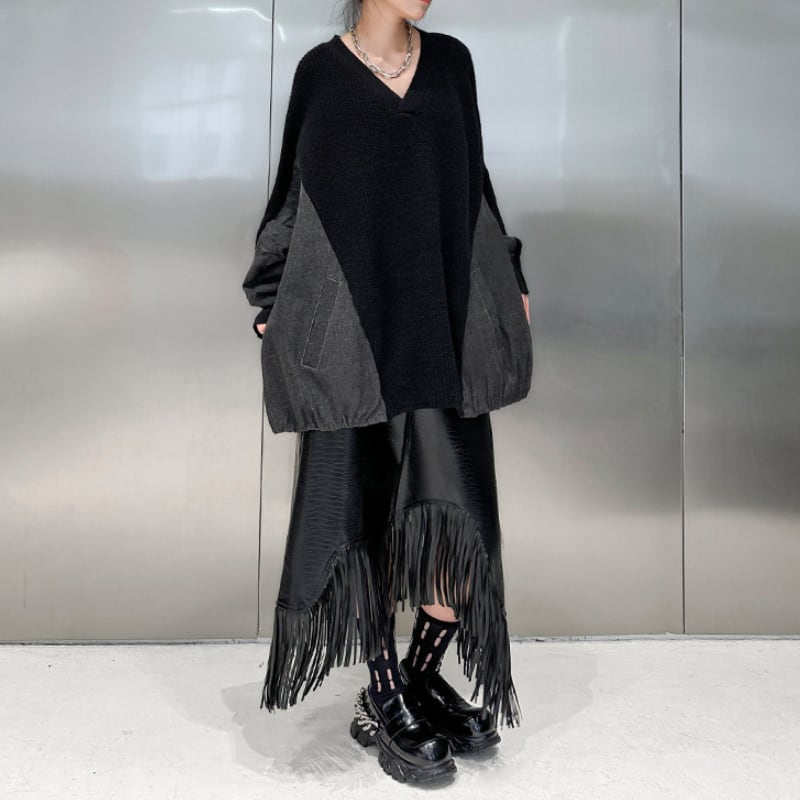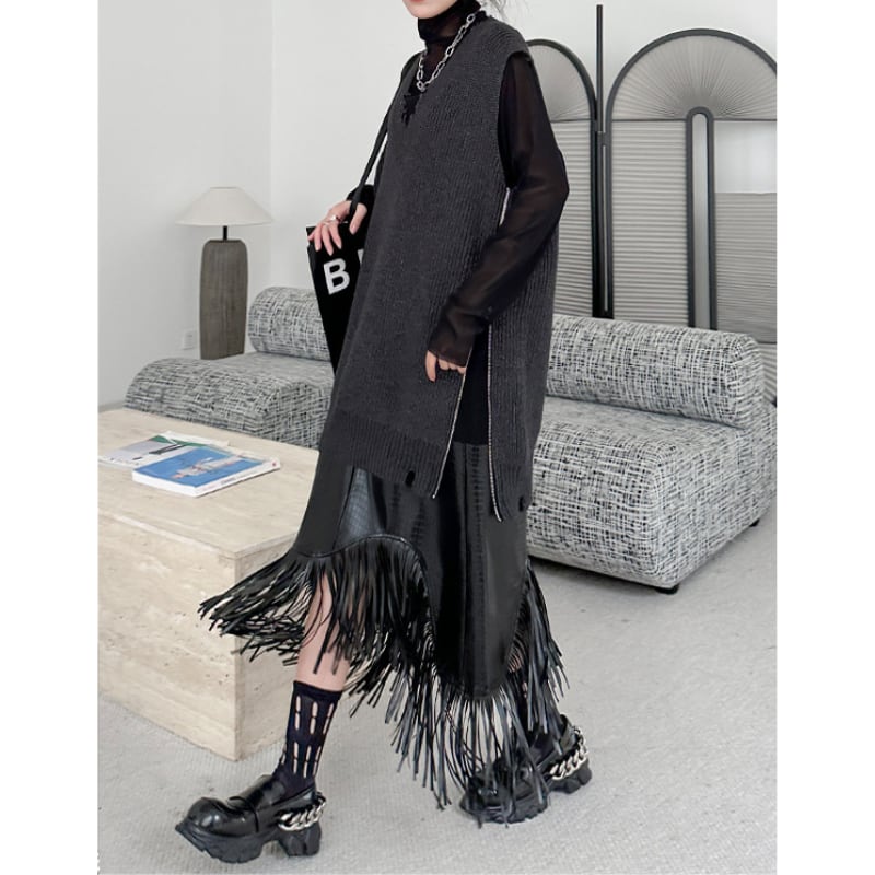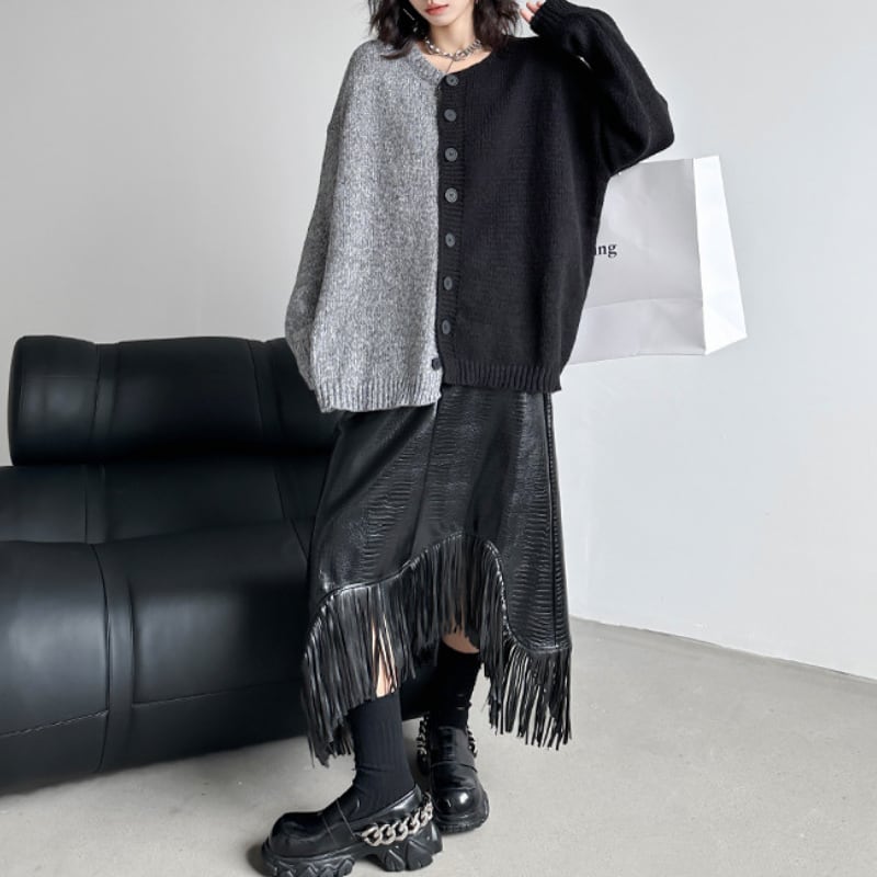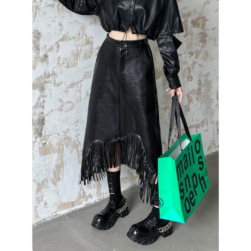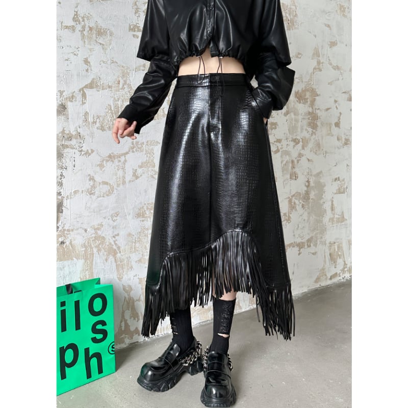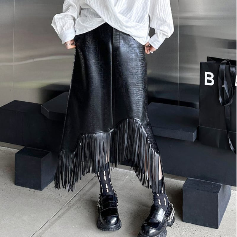 アシンメトリーエコレザーフリンジスカート