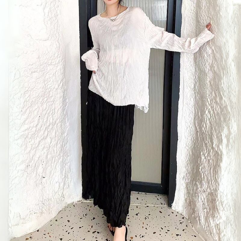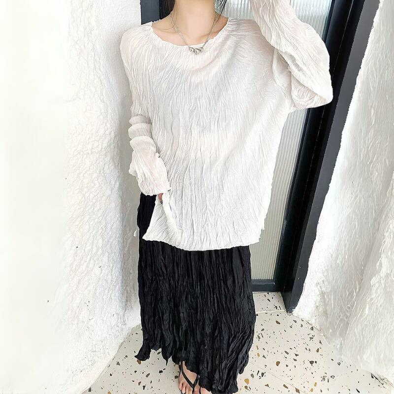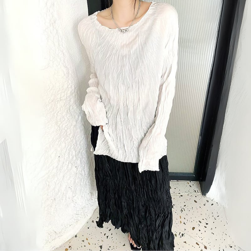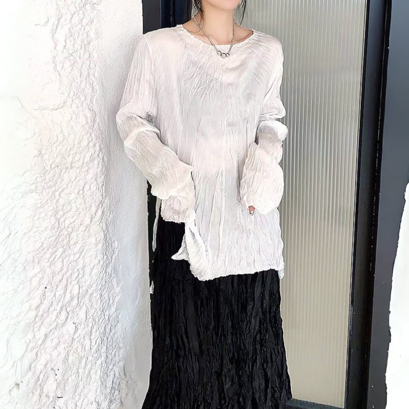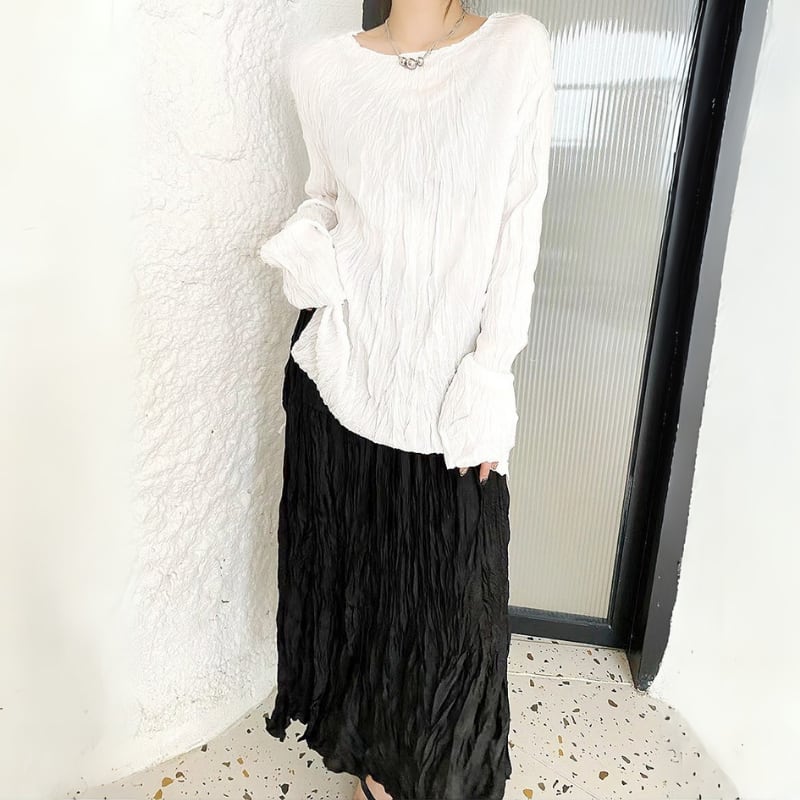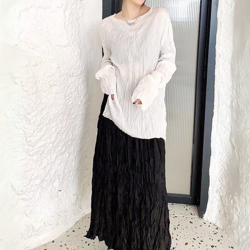 ワッシャー加工が施された、表情豊かなロングTシャツ。