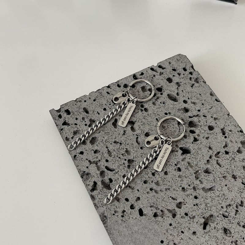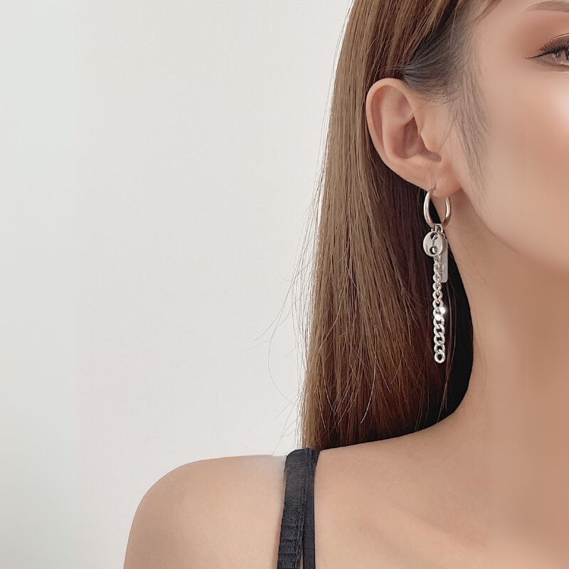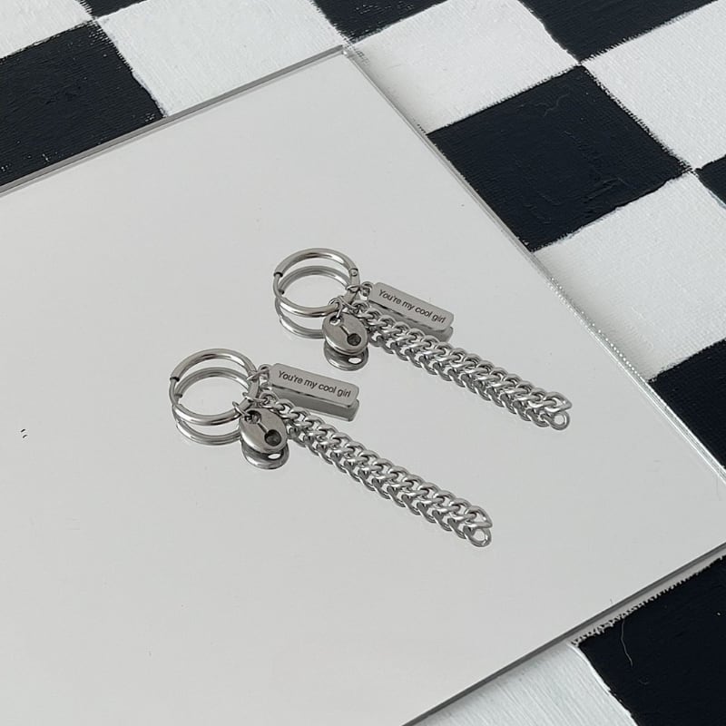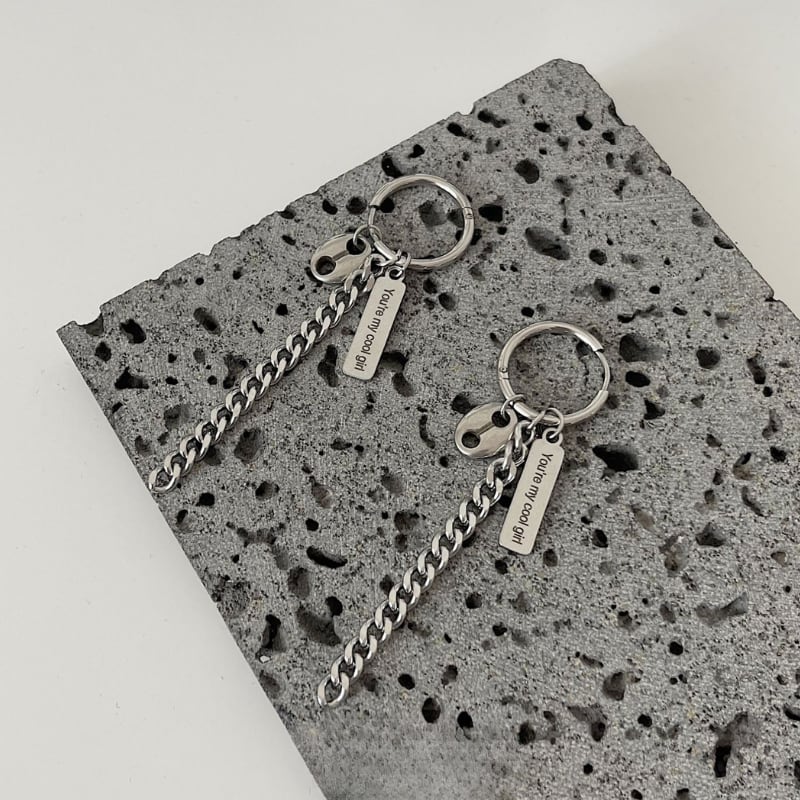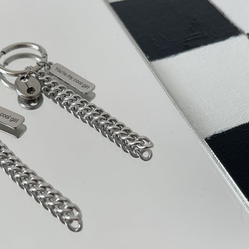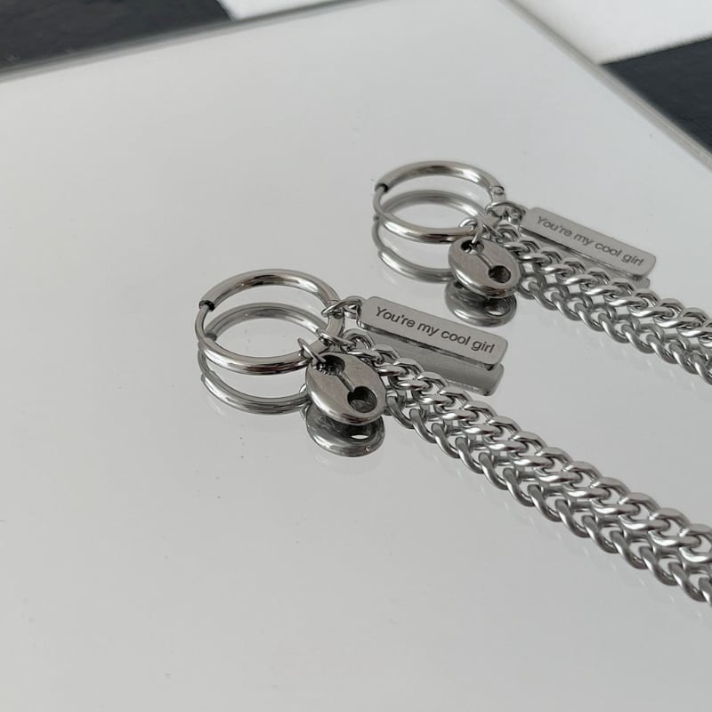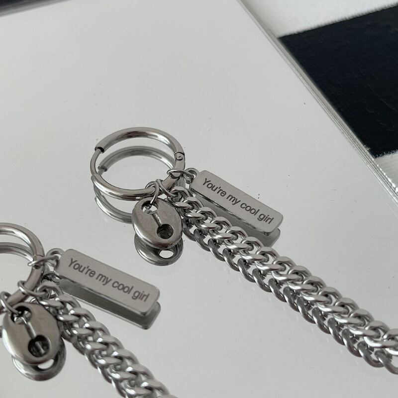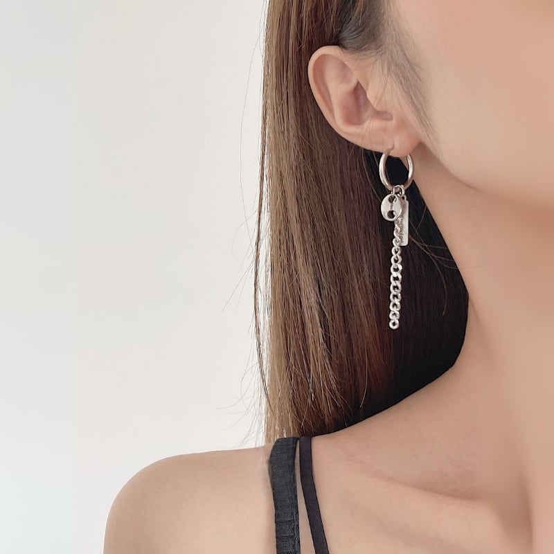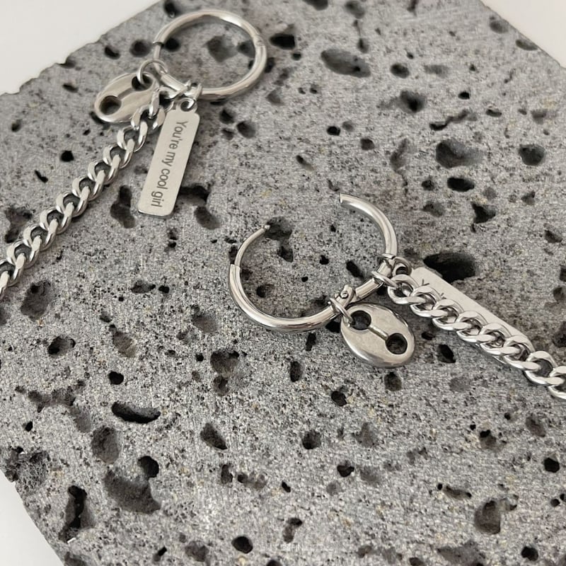 揺れるチェーンとロゴプレートがアクセントとなり、顔周りを華やかに、そして個性的に彩ります。