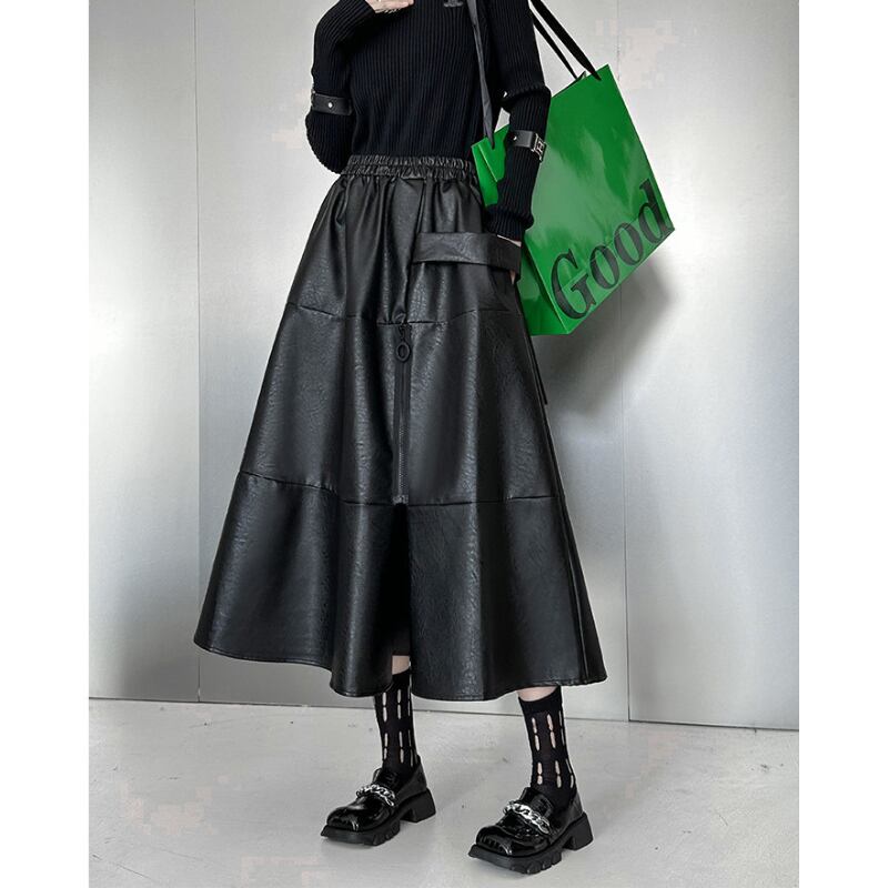ジップアップエコレザーフレアスカート