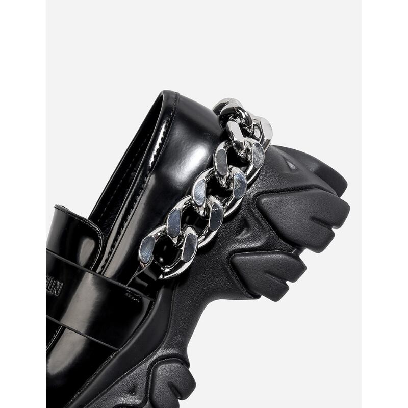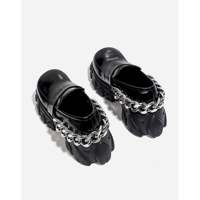存在感のあるボリュームソールと、クールなチェーンモチーフが、足元にモードなアクセントを添えるシューズ。