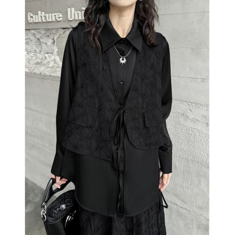 一枚でスタイリングが完成する、フェイクレイヤードデザインシャツ。