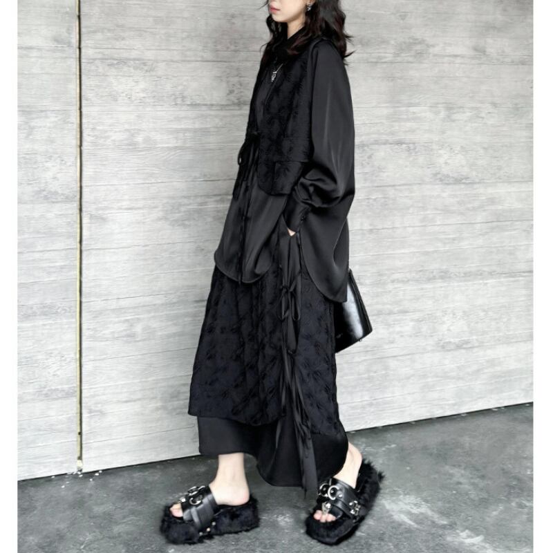 サイドの紐を絞ることで、シルエットを調整でき、様々な着こなしを楽しめるのも魅力です。