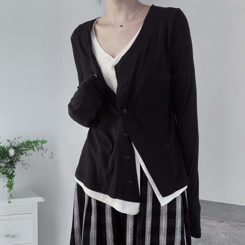 フェイクレイヤードリブカーディガン