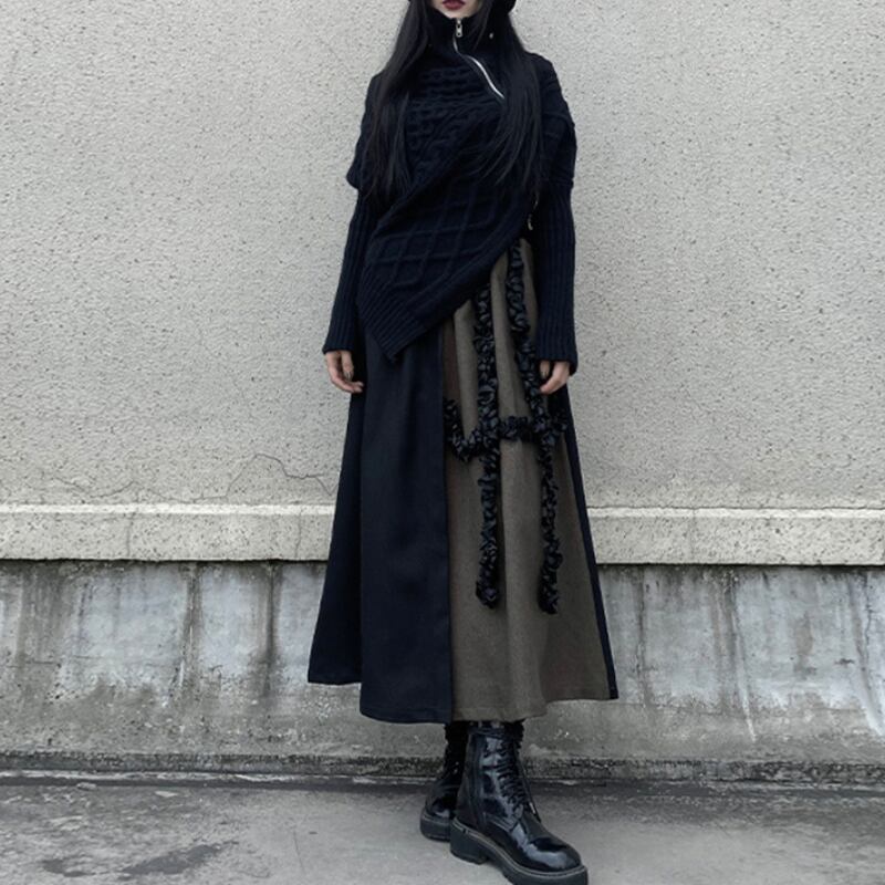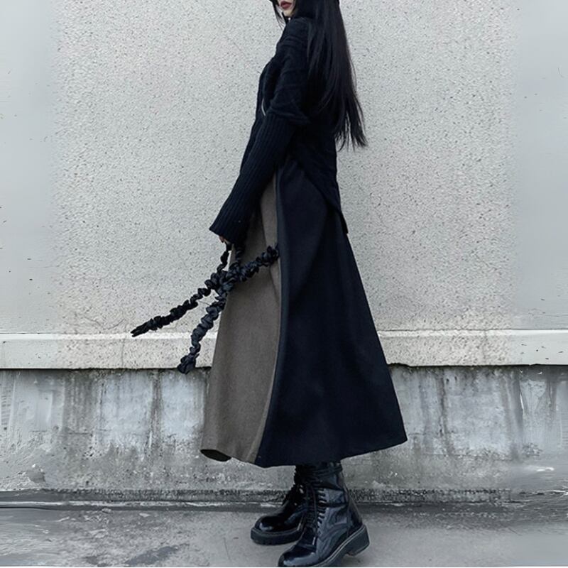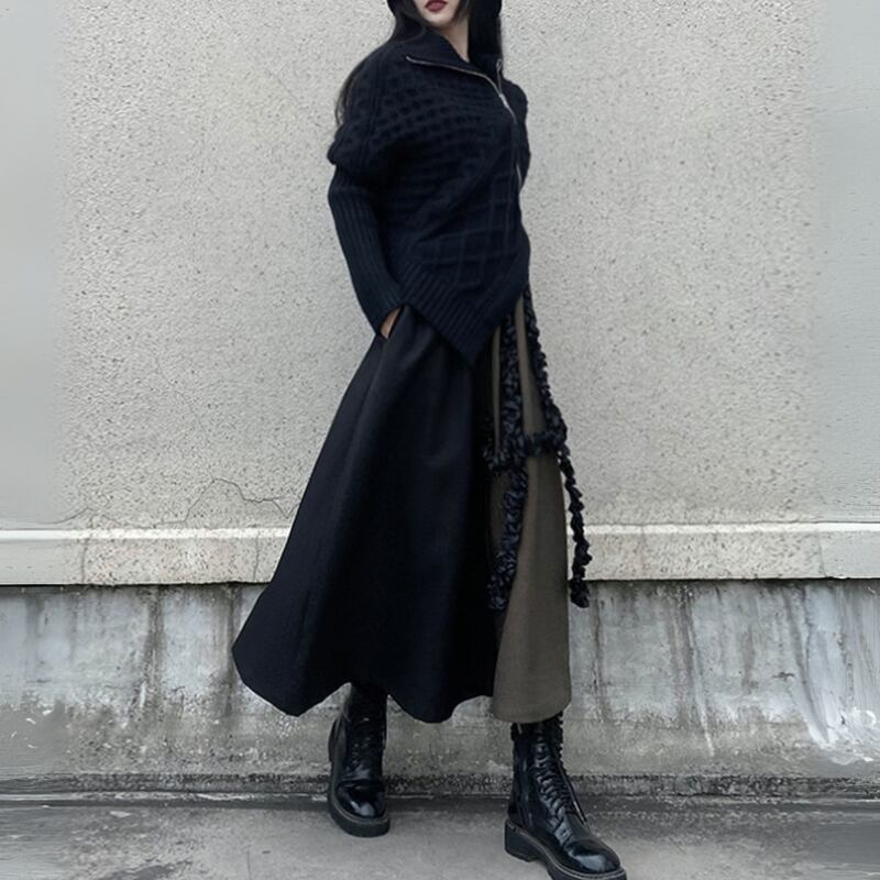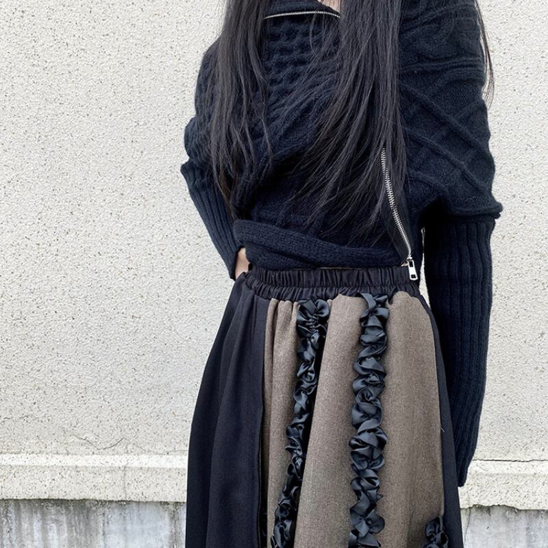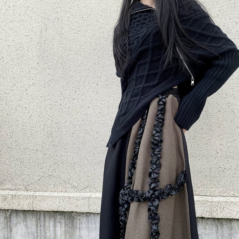 ブラックとブラウンのバイカラーデザインが、クールな個性を放つフレアスカート。
