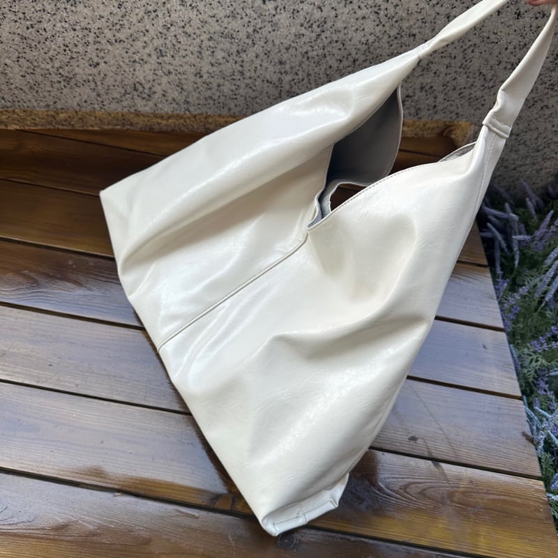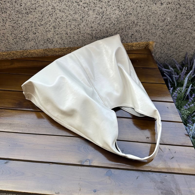 ミニマルなデザインと、柔らかく手になじむエコレザー素材が魅力のショルダーバッグ。