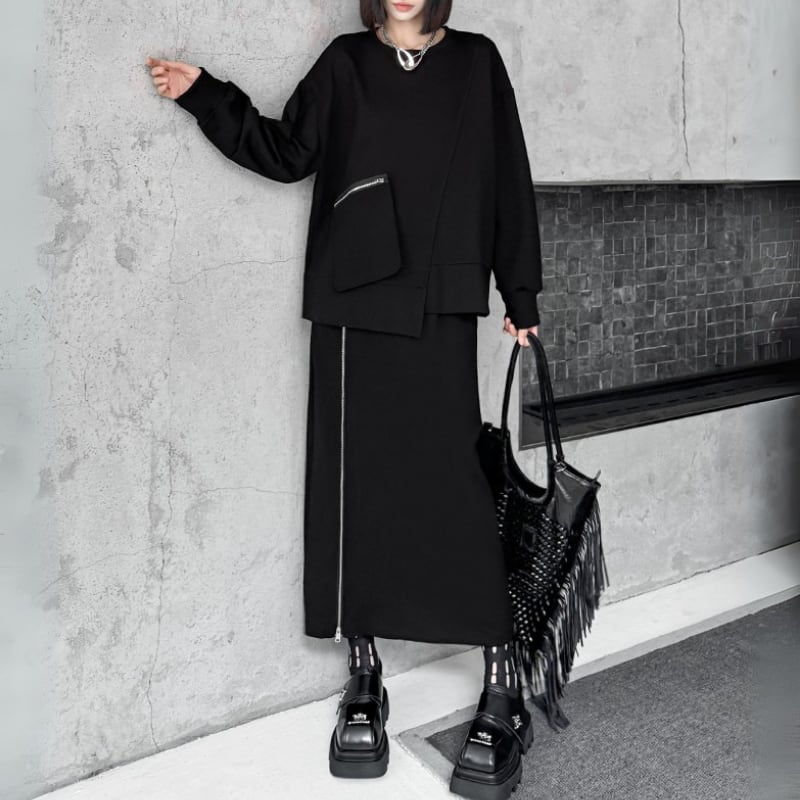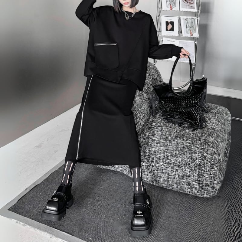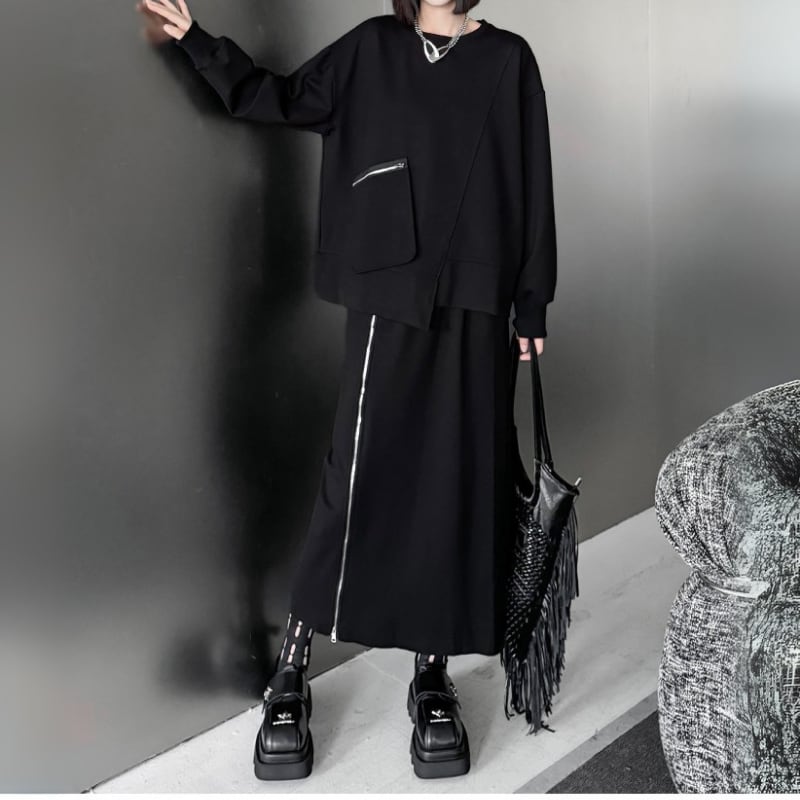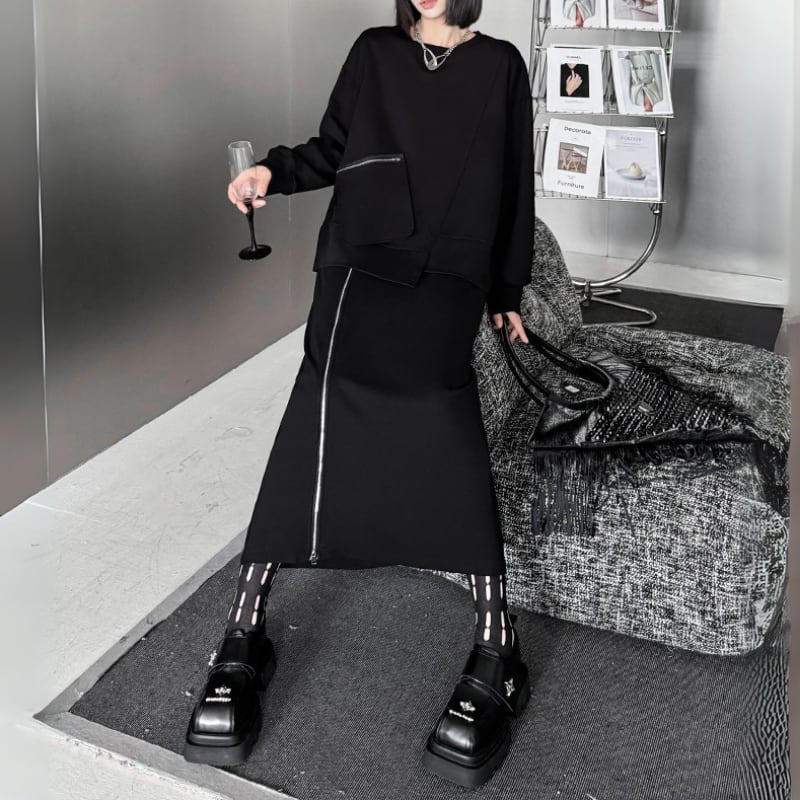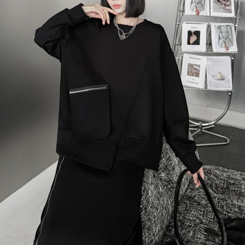 アシンメトリージップポケットスウェット