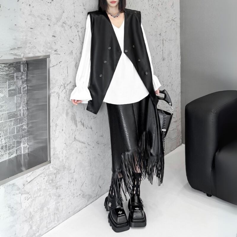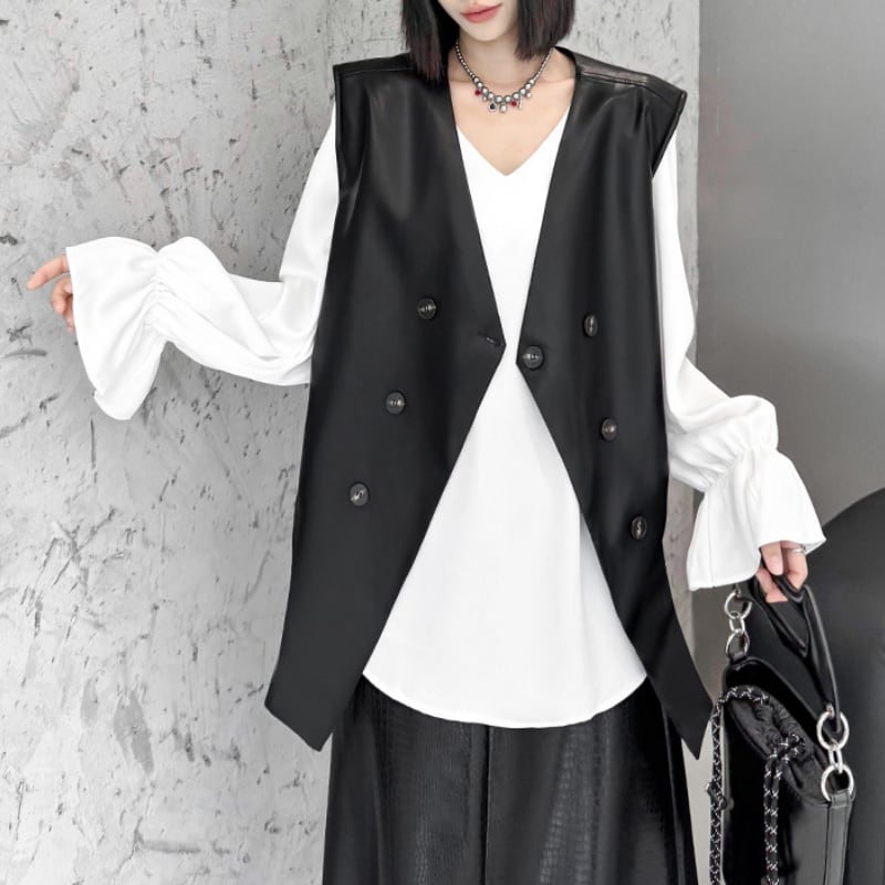 ダブルボタンのデザインがクールな個性を放つベスト。