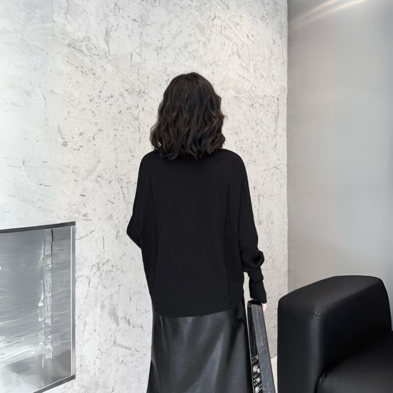 ドロップショルダーのデザインが肩回りを優しく包み込み、リラックス感のある着心地です。