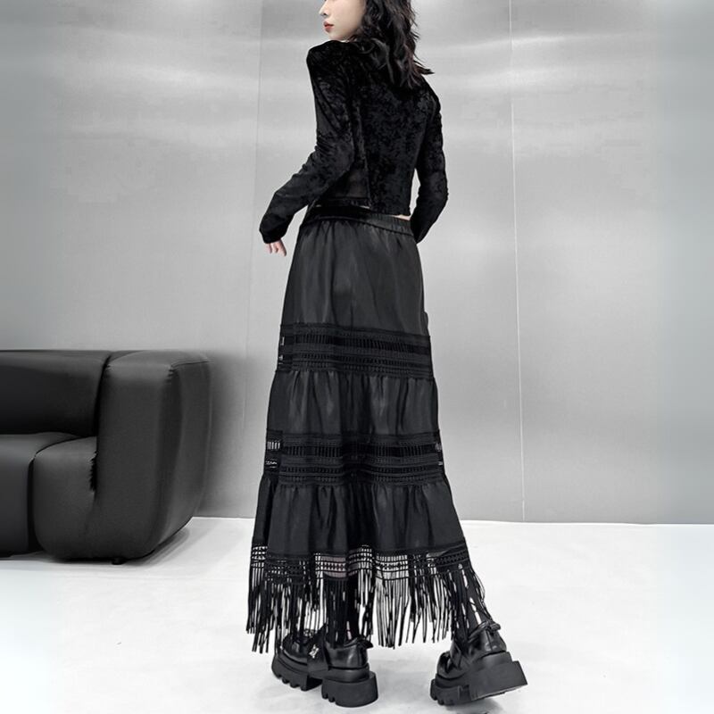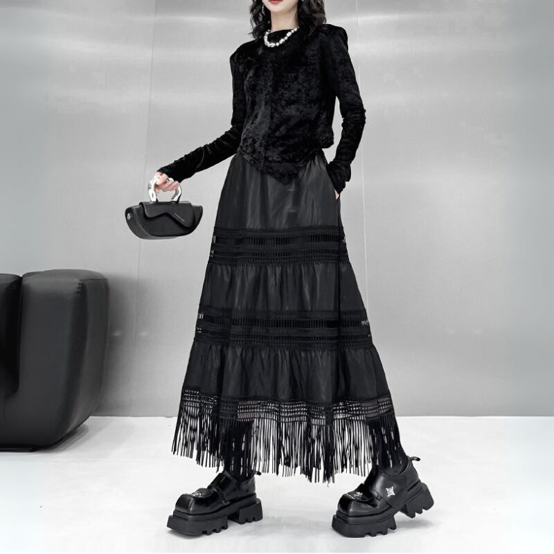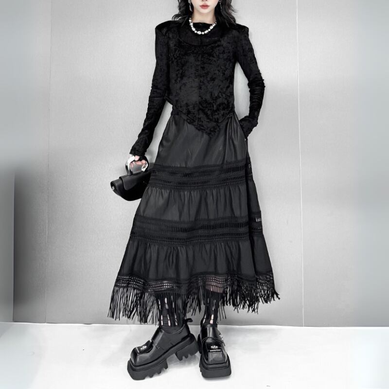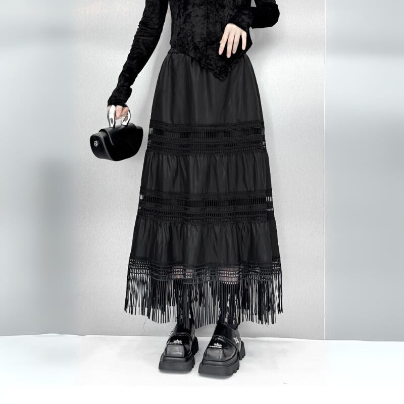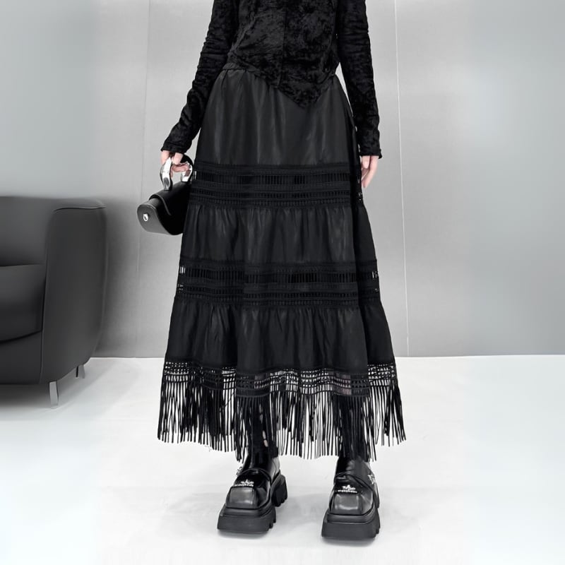 個性的なデザインが目を引く、フリンジティアードスカート。