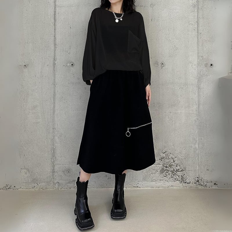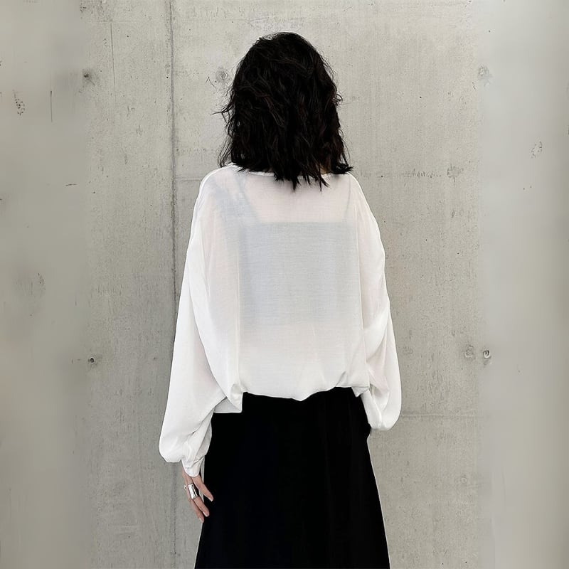 美しいデコルテラインを演出するボートネックと、ゆったりとしたバットスリーブ(ドルマンスリーブ)が、着る人の個性を引き立てます。