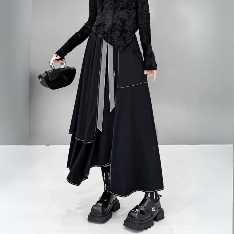 アシンメトリーレイヤードロングスカート