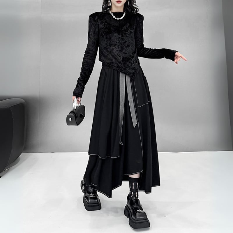 Asymmetrical Layered Long Skirt H0239