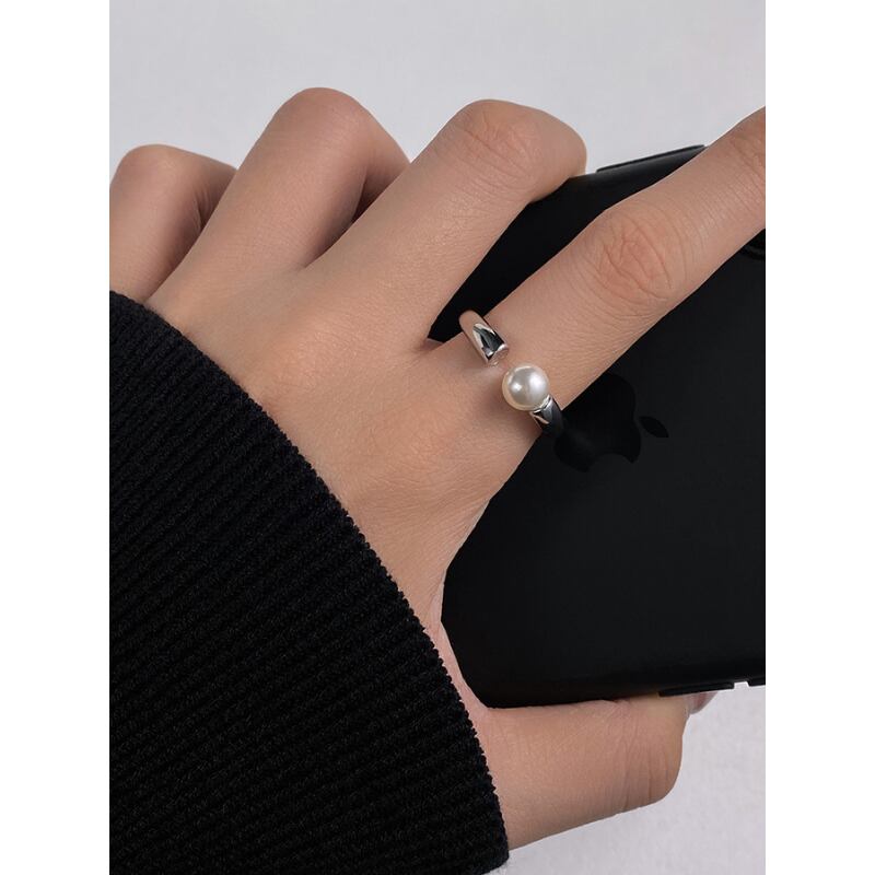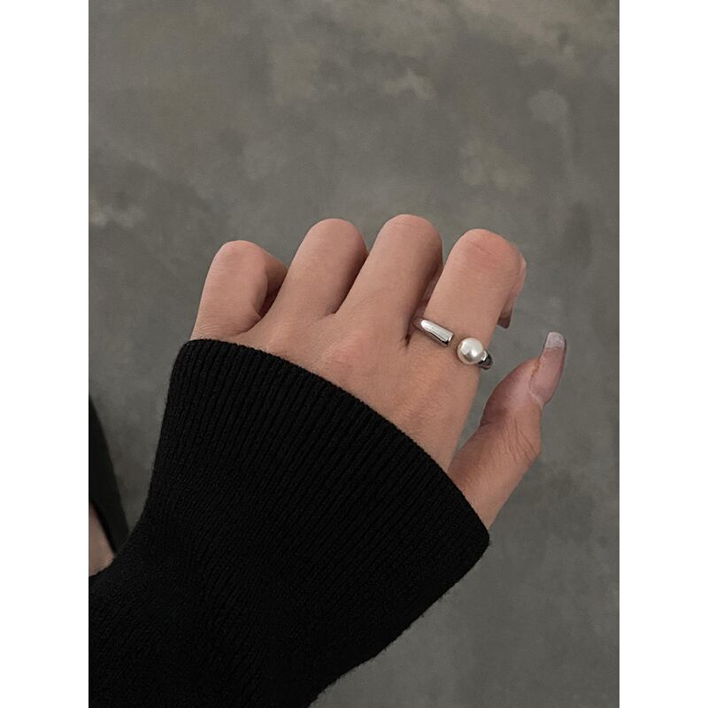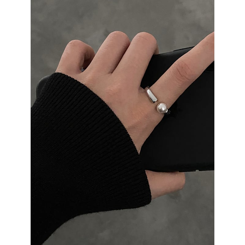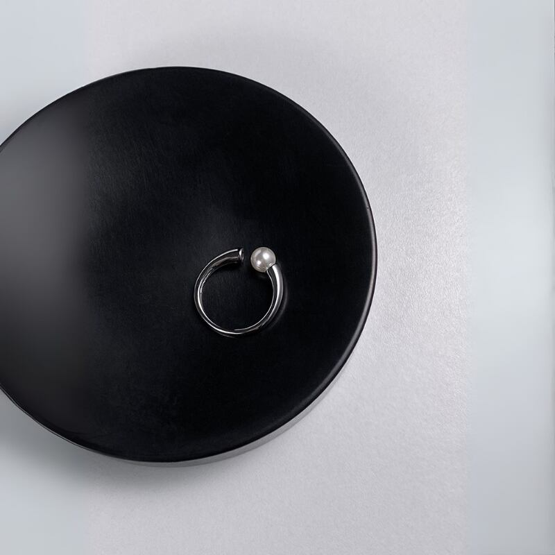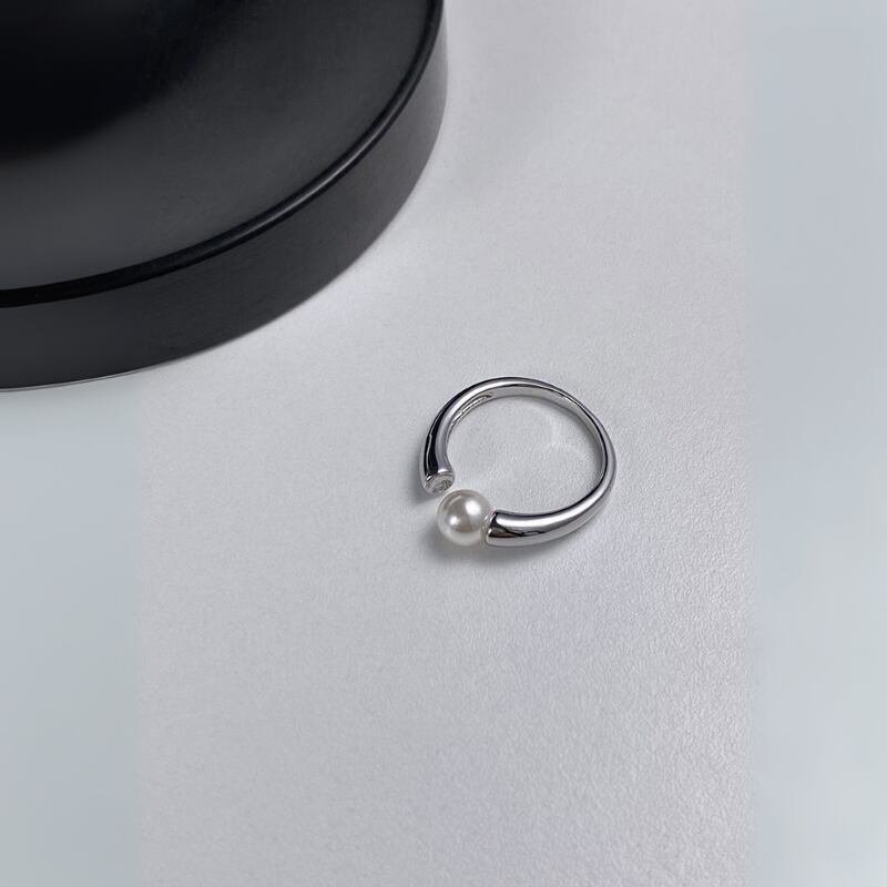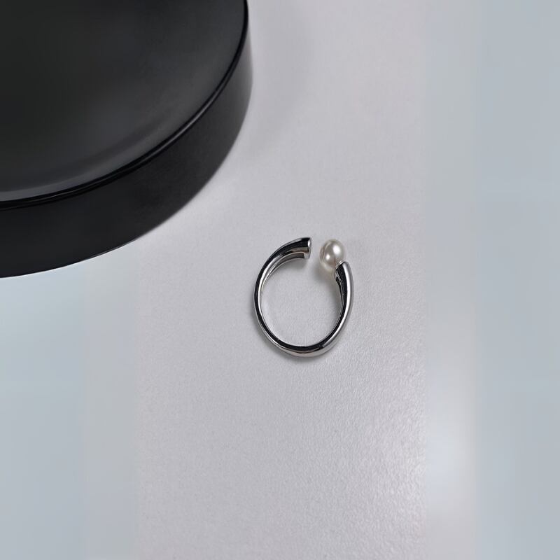 シルバーカラーの美しい曲線と、控えめに輝くパールの組み合わせが、指元に洗練された印象を与えます。