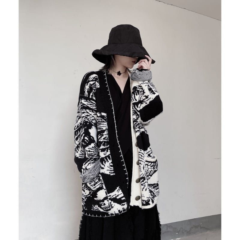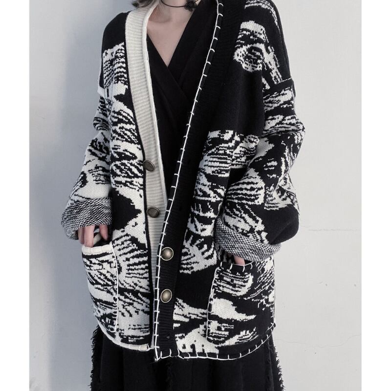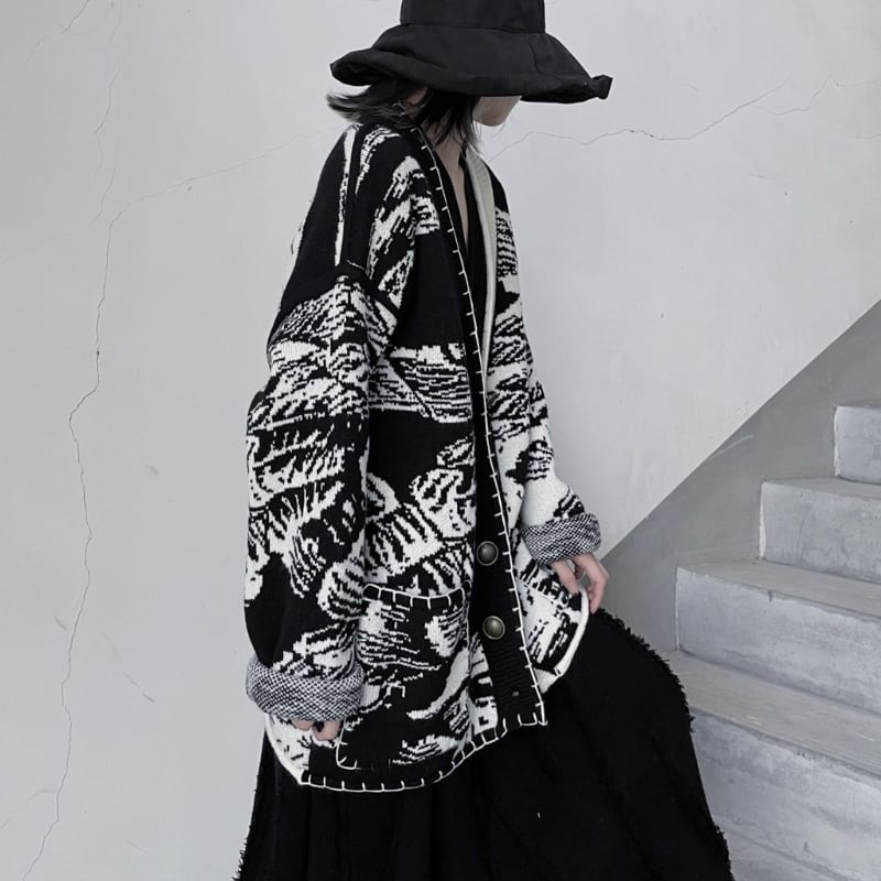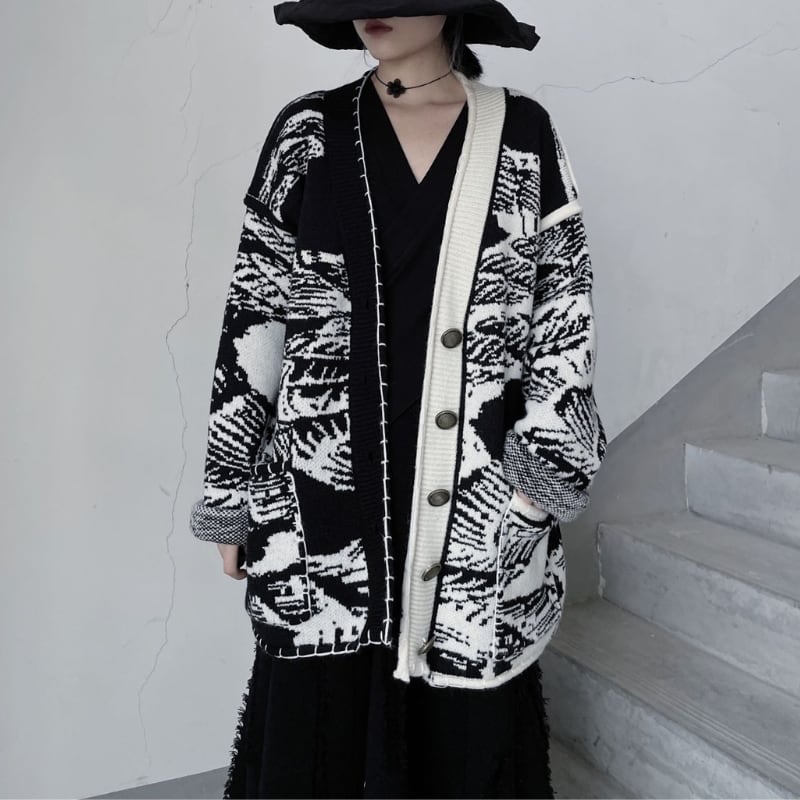 総柄オーバーサイズニットカーディガン