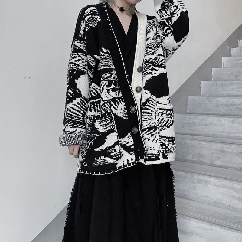 All-Over Print Oversized Knit Cardigan H0251