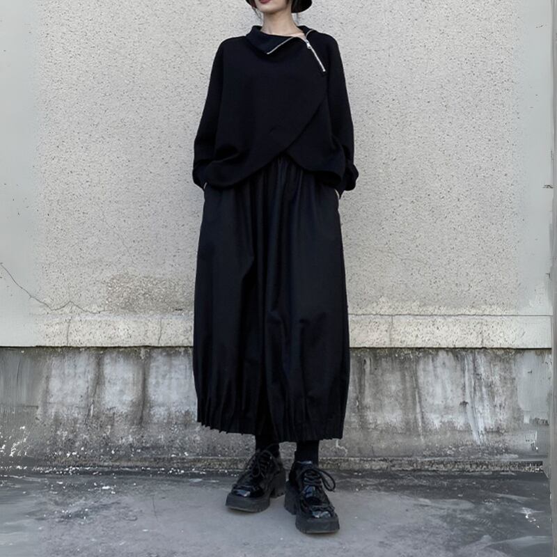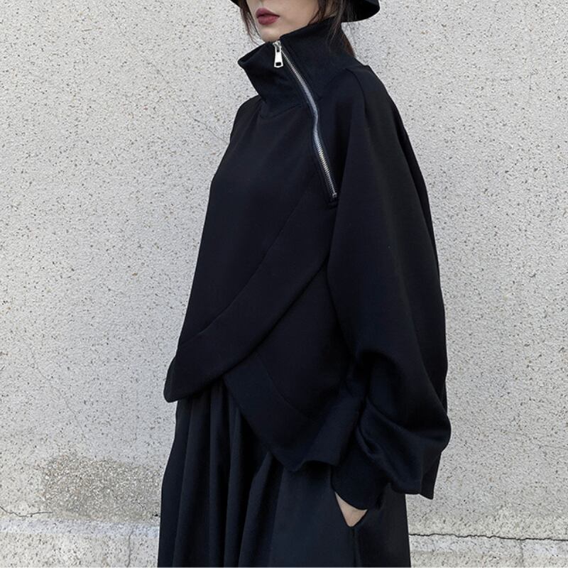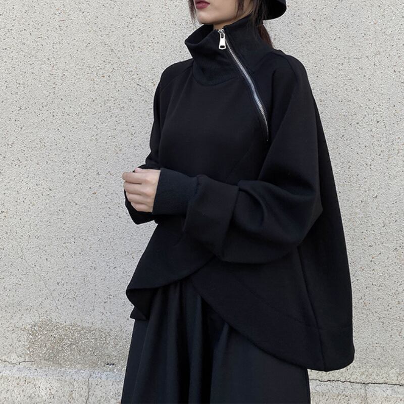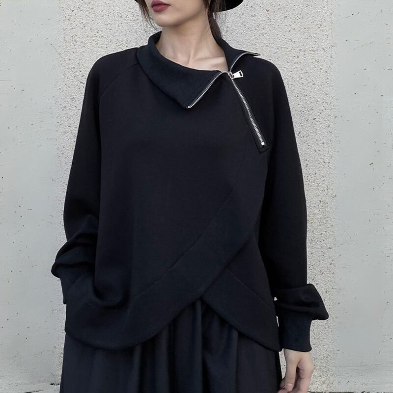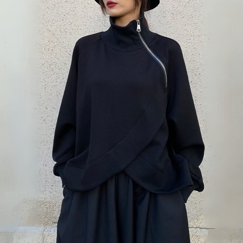 斜めに配されたジップデザインが、シンプルながらも個性的なスタイルを演出。