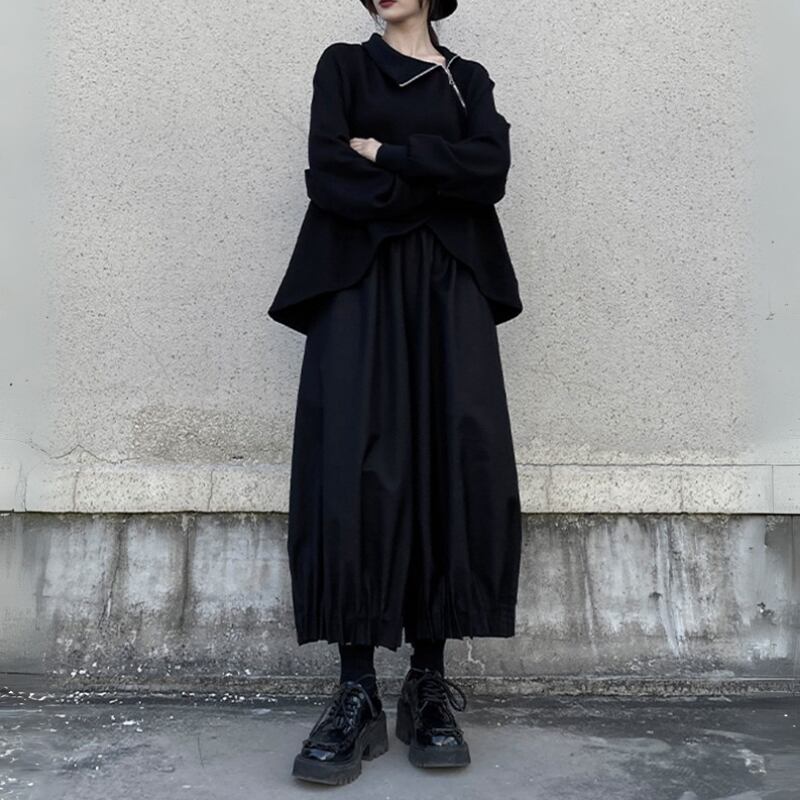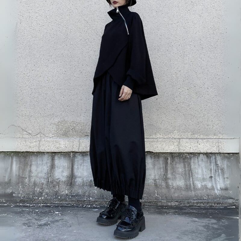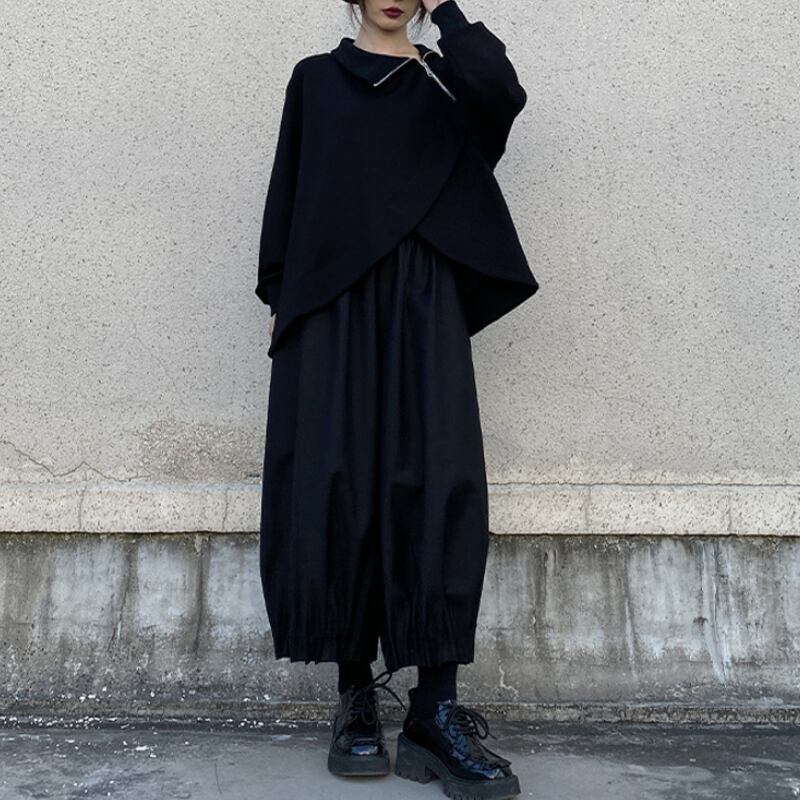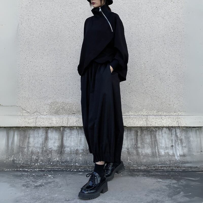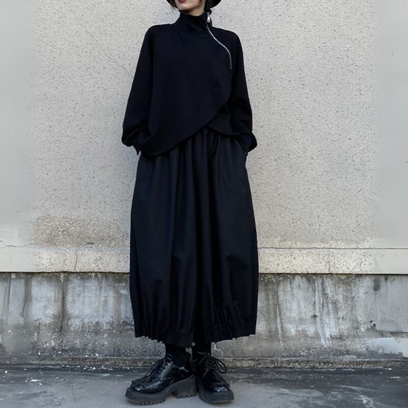斜めに配されたジップデザインが、シンプルながらも個性的なスタイルを演出。