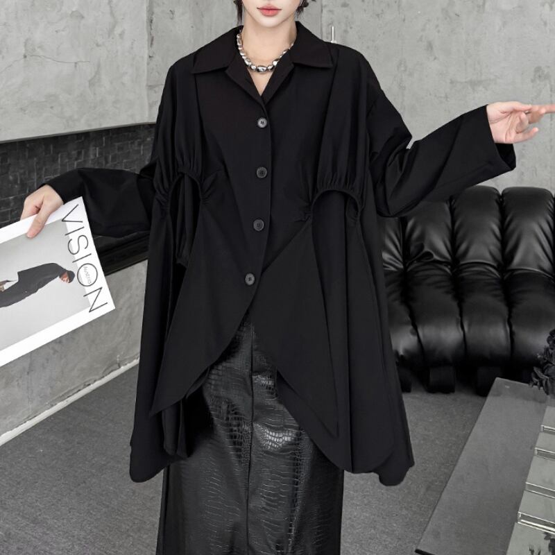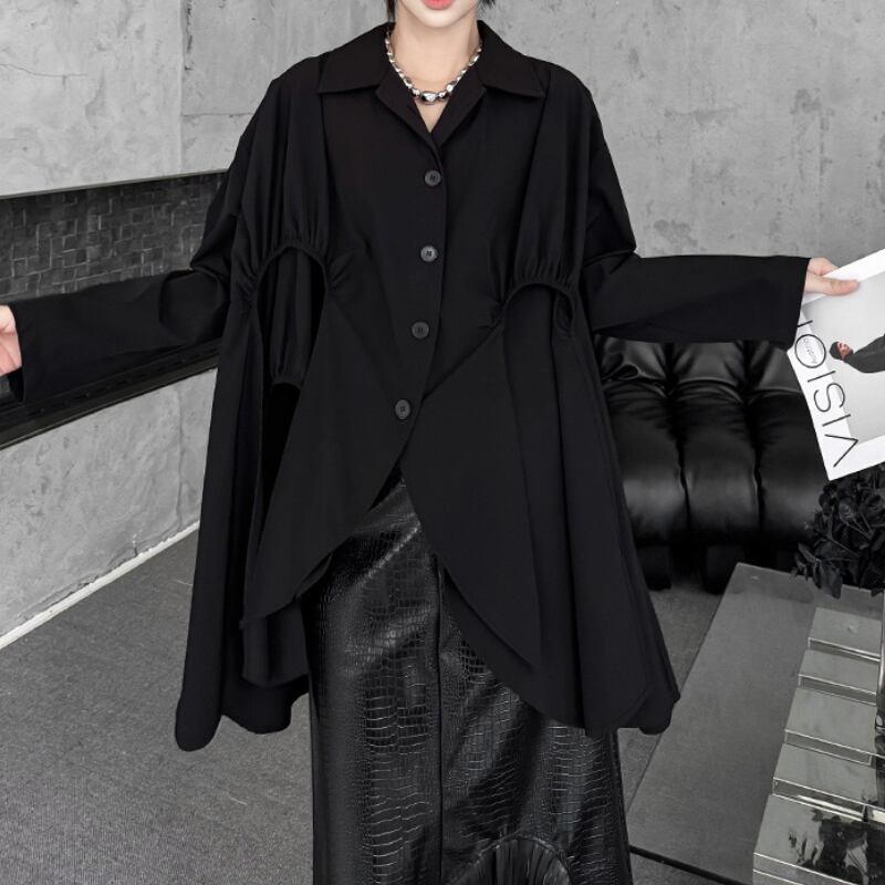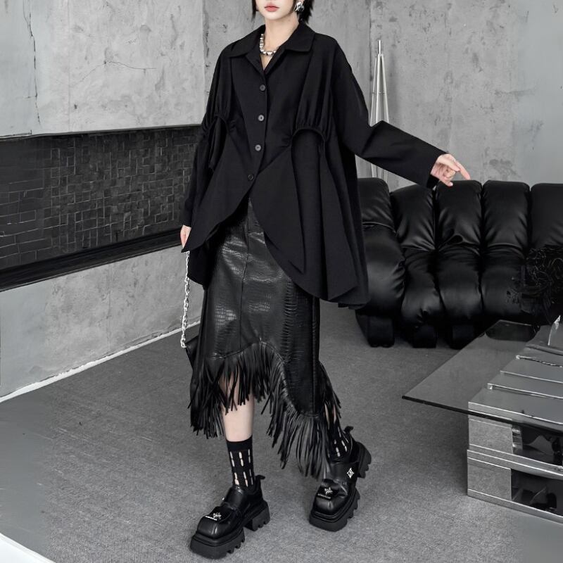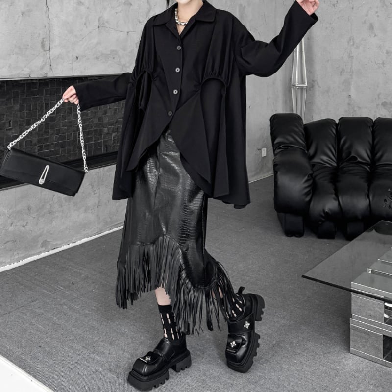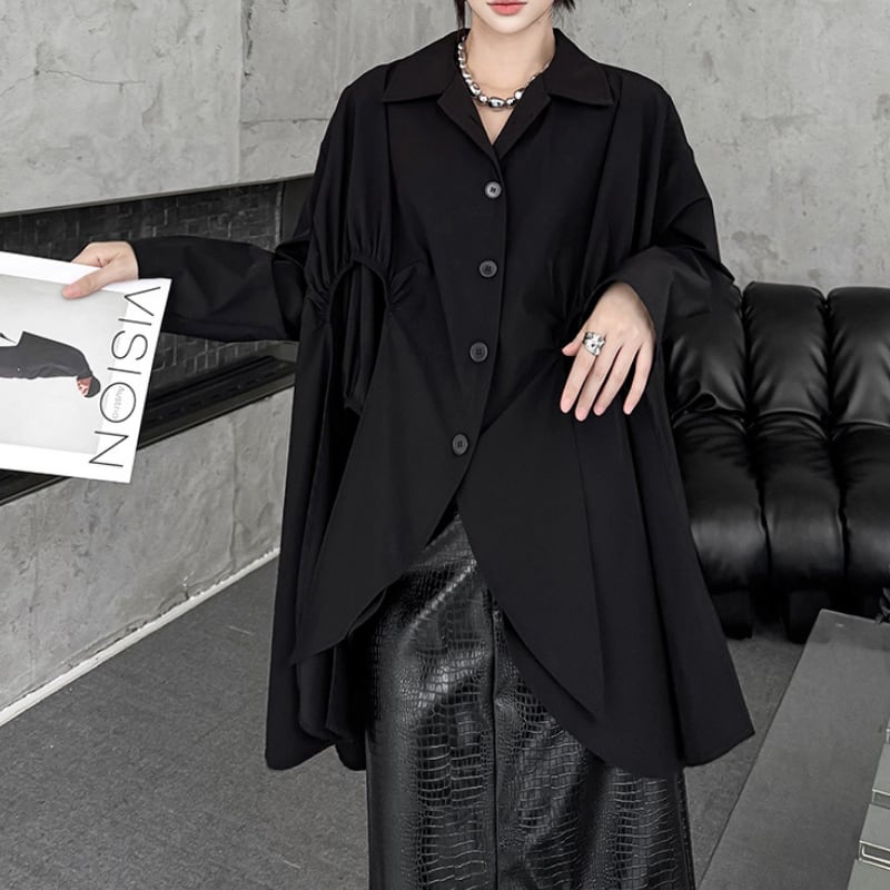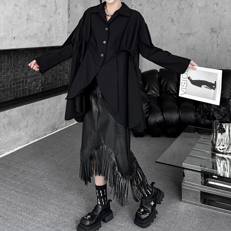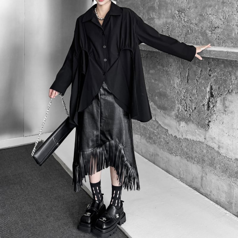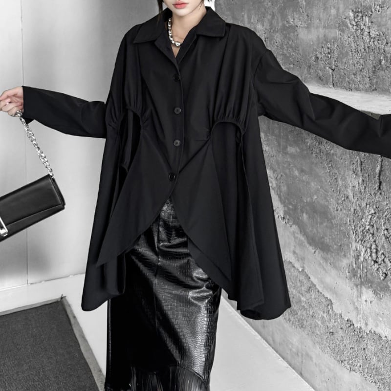 アシンメトリー変形フレアシャツ