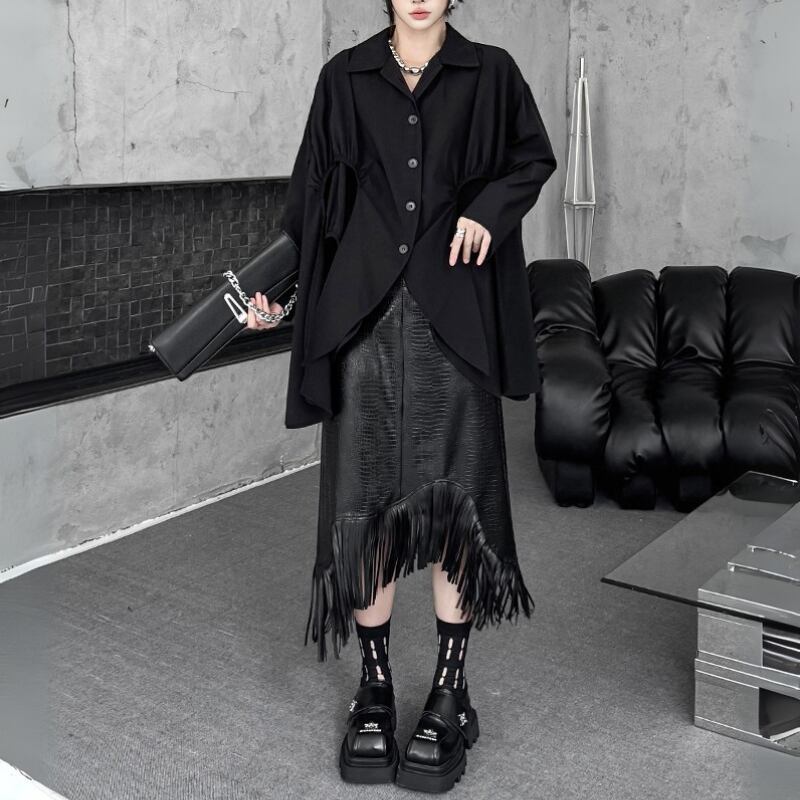 Asymmetrical Eco-Leather Fringe Skirt H0194