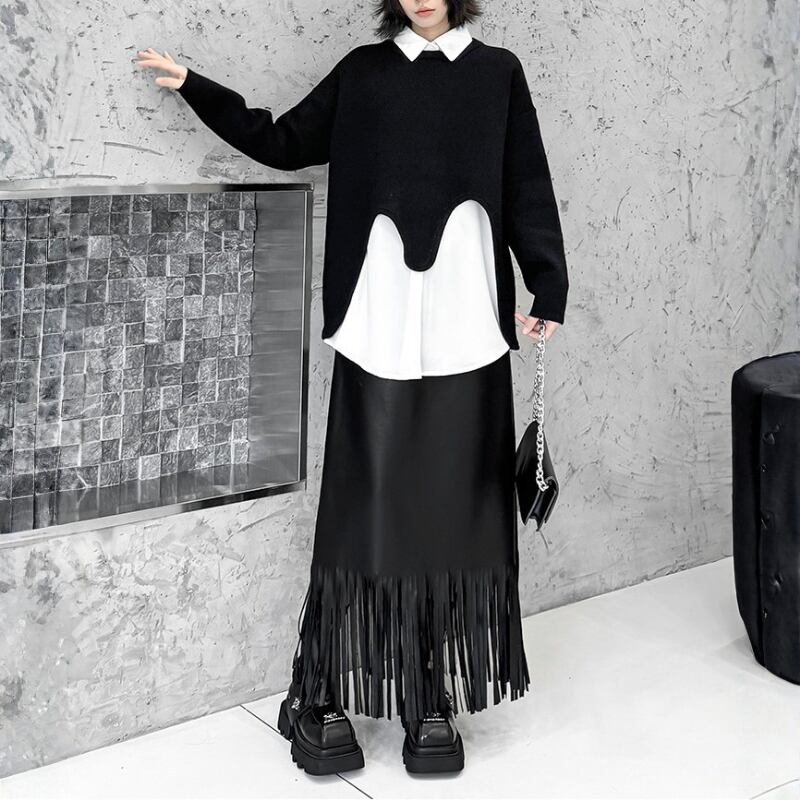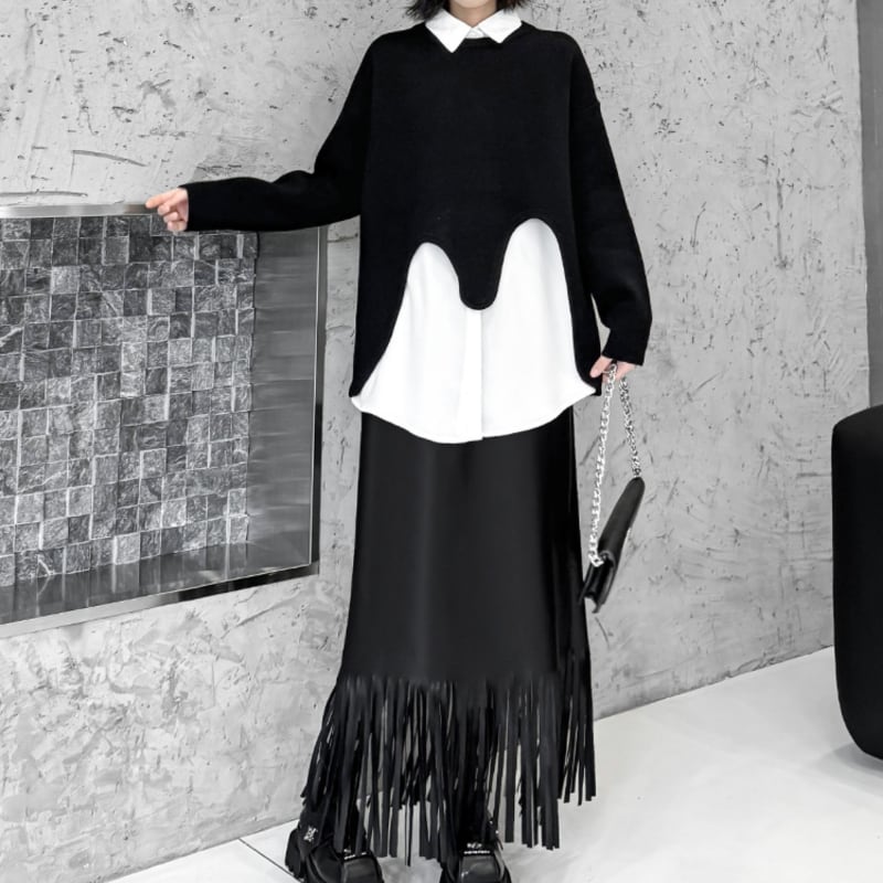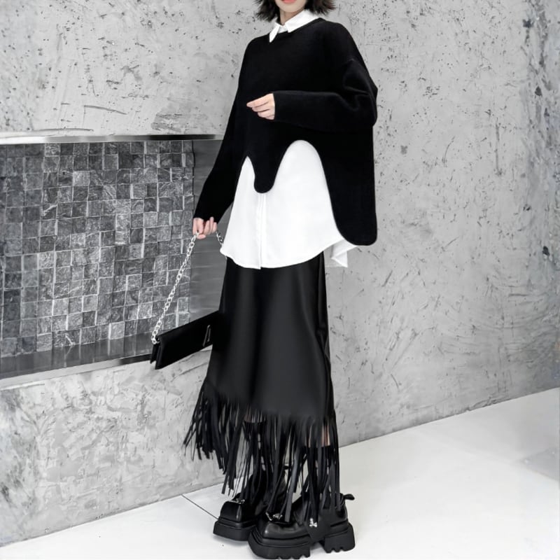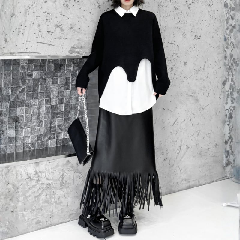 Long Fringe Eco-Leather Skirt H0187