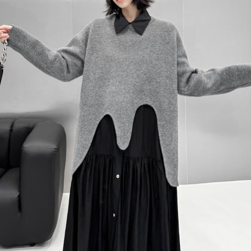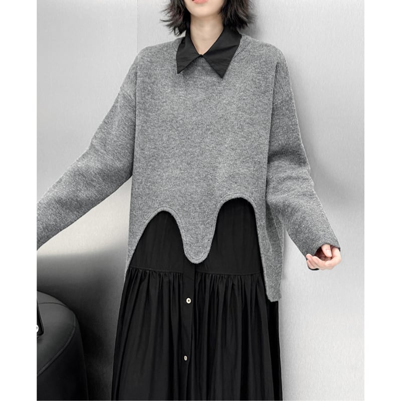 ウェーブカッティングヘム ニットプルオーバー
